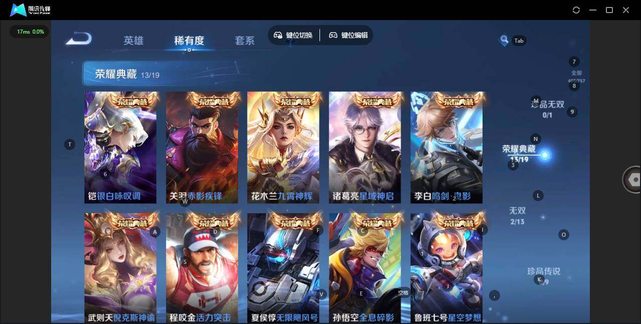 【荣耀典藏】:武则天英雄,孙悟空全息碎影,武则天倪克斯神谕,夏侯惇无限飓风号,小乔天鹅之梦,孙尚香杀手不太冷,鲁班七号星空梦想,芈月大秦宣太后,程咬金活力突击,李白鸣剑曳影,诸葛亮星域神启,花木兰九霄神辉,关羽赤影疾锋,铠银白咏叹调