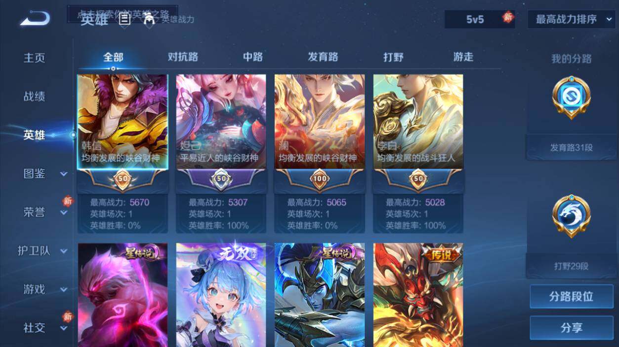 [15758595]可二次【特价出售/店主推荐 发育路31段 1市标】安卓Q-V11-至尊星耀V段位-129英雄-510皮肤-5典藏皮肤-1典藏英雄-6无双-7珍品传说-57传说-5星传说-175史诗