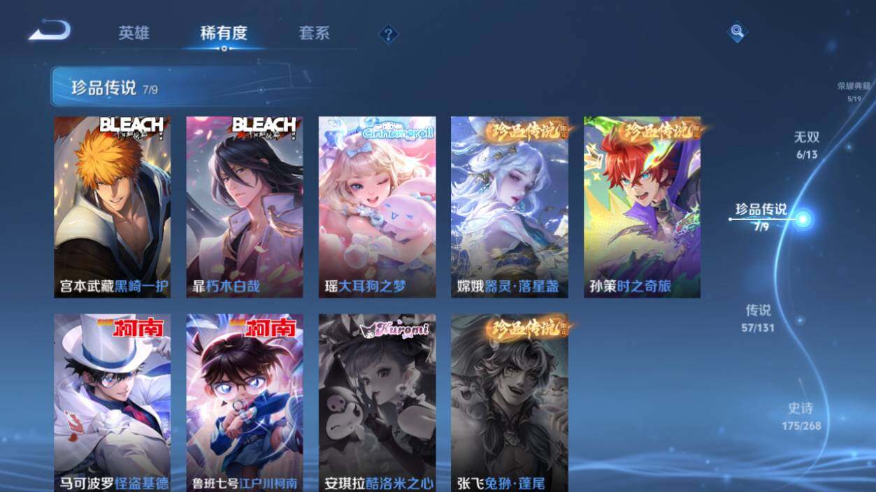 【珍品传说】:马可波罗怪盗基德,鲁班七号江户川柯南,孙策时之奇旅,嫦娥器灵落星盏,瑶大耳狗之梦,暃朽木白哉,宫本武藏黑崎一护
