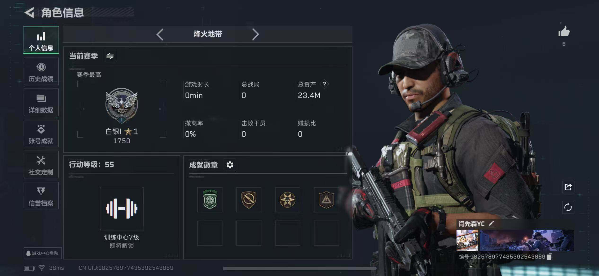 [15759351]23m总资产-4365k哈伏币-55烽火等级-白银-11战场等级-列兵