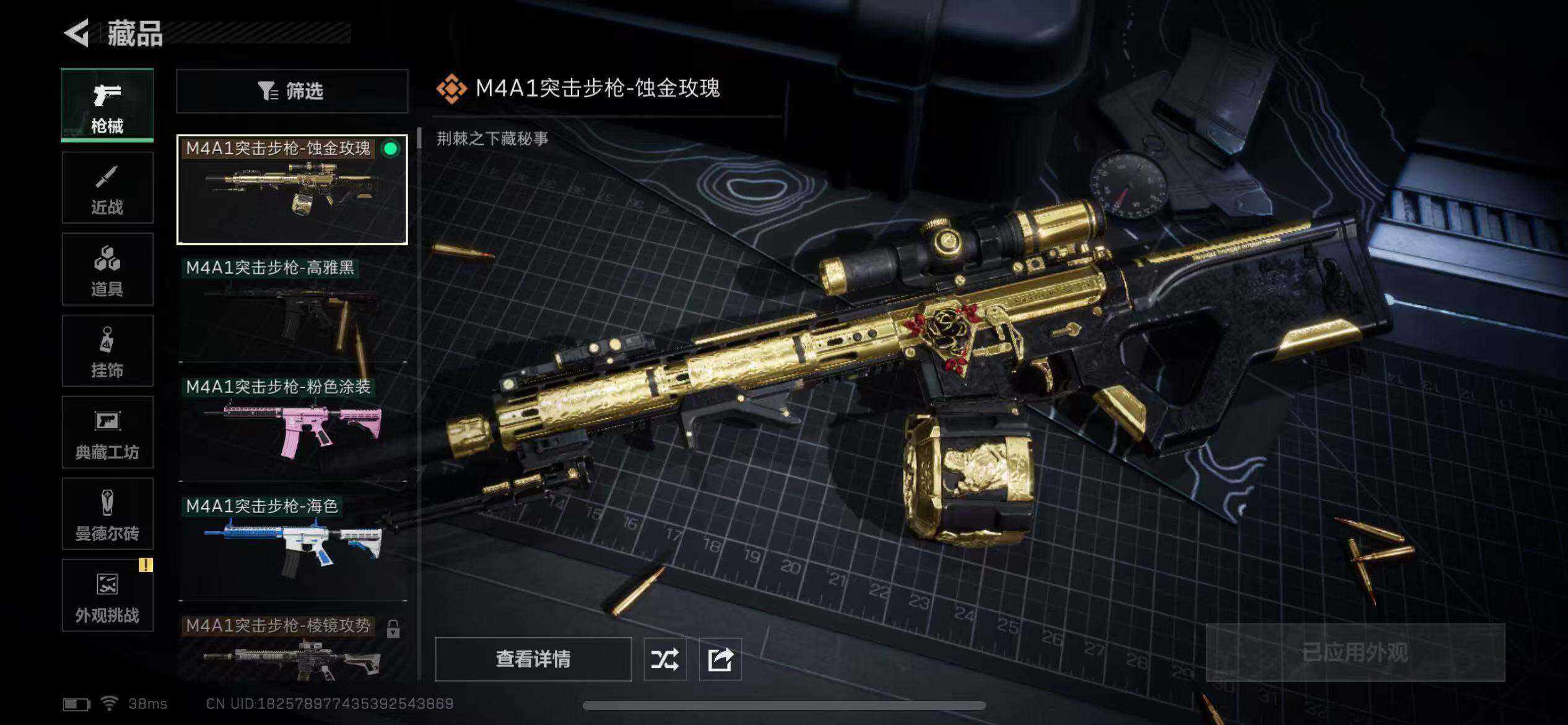 【传说外观】:M4A1突击步枪-蚀金玫瑰,AK-12突击步枪-夜鹰,725双管霰弹枪-送葬人-无题密令,复合弓-黑·天际线