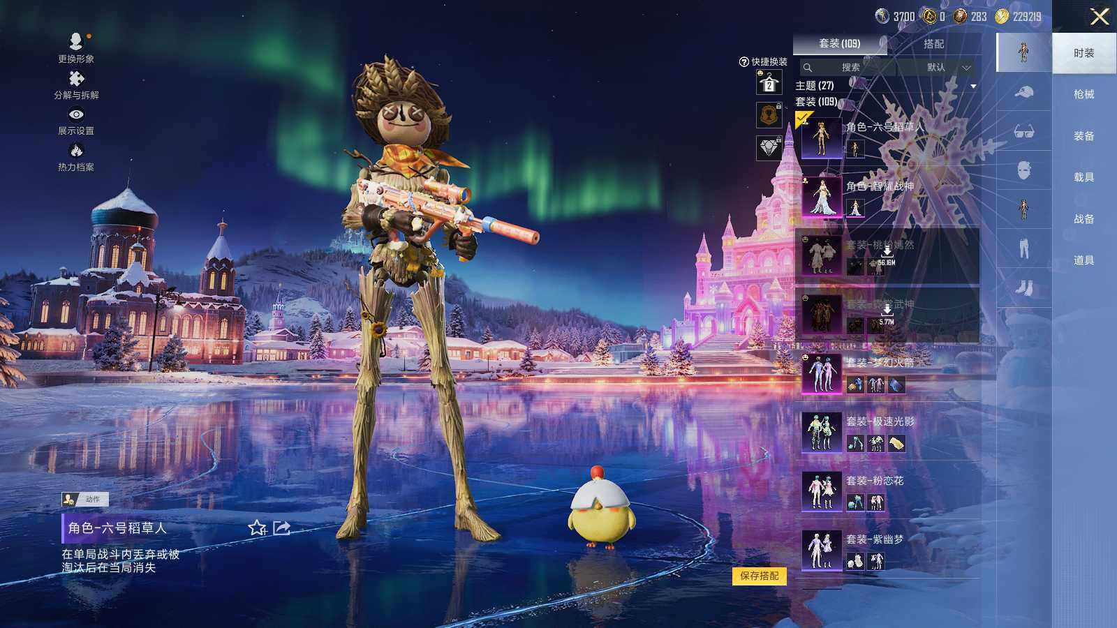 【热门品类】:粉装-梦幻火箭,套装-金羽特工,角色-六号稻草人