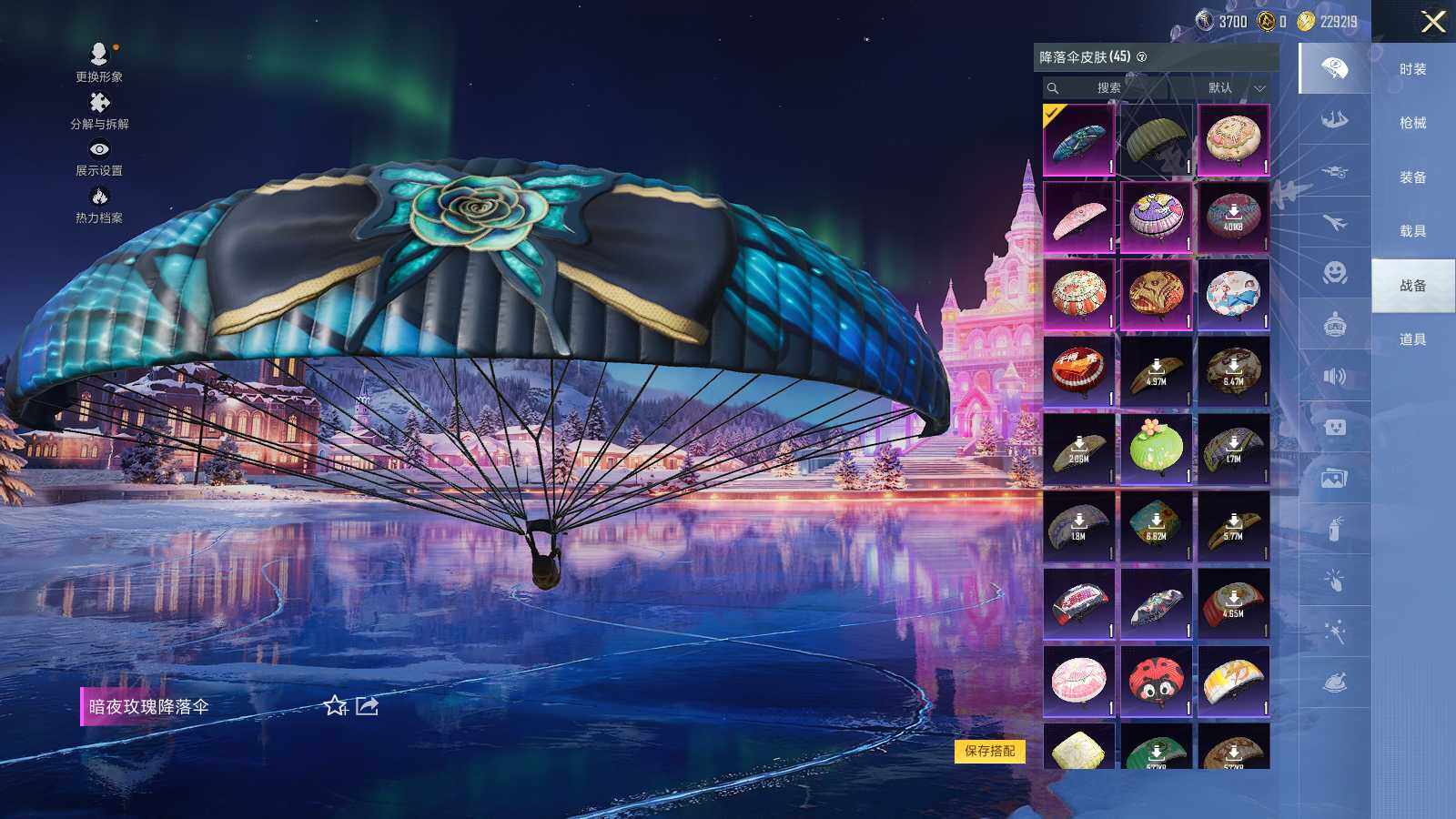 【粉色降落伞】:梦幻火箭降落伞,马卡龙降落伞,锦绣火鲤降落伞,暗夜玫瑰降落伞,齐天大圣降落伞,临安公主降落伞,星穹咏叹调降落伞