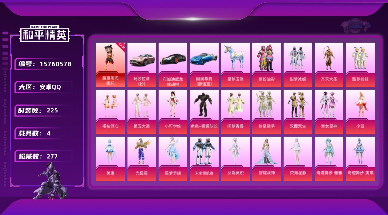 [15760578]可二次【特价出售/店主推荐】安卓 手Q-1神装-22粉装-11特效枪-4载具-6粉色飞行器-108806热力值-19王牌印记-225套装-277枪皮