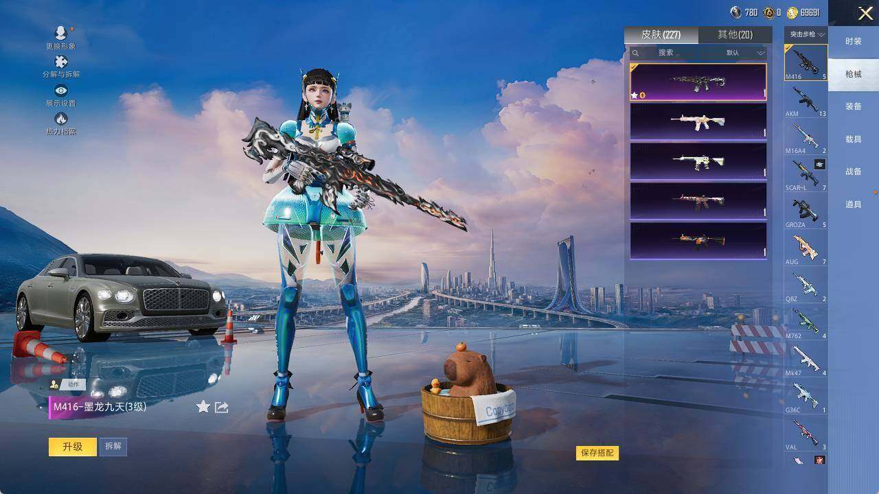 M416-墨龙九天,AUG-暖羊咩咩,M762-青锋波束,Kar98K-巳巳如意