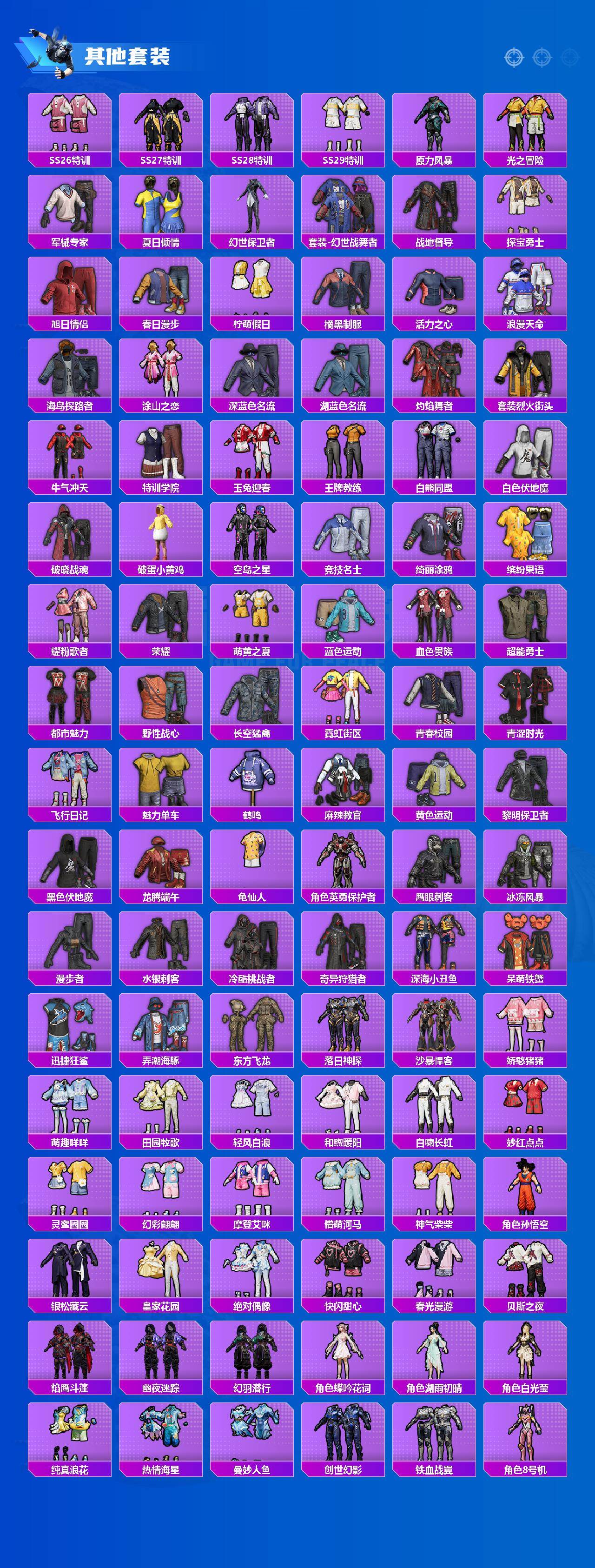 【粉色套装】:粉装-数码大师,粉装-未来战士,粉装-宝贝奶油派,粉装-天使彩虹糖,玩偶服-猪猪侠,角色-初号机 觉醒Ver.,角色-萨利娅,角色-异瞳寒姬