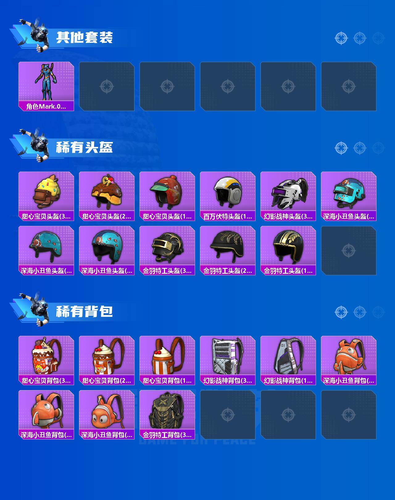 【热门品类】:套装-浪漫天命,套装-都市猎人,套装-深海小丑鱼,套装-小丑鱼,套装-奇异狩猎者,套装-金羽特工,套装-龟仙人,角色-8号机,角色-Mark.06