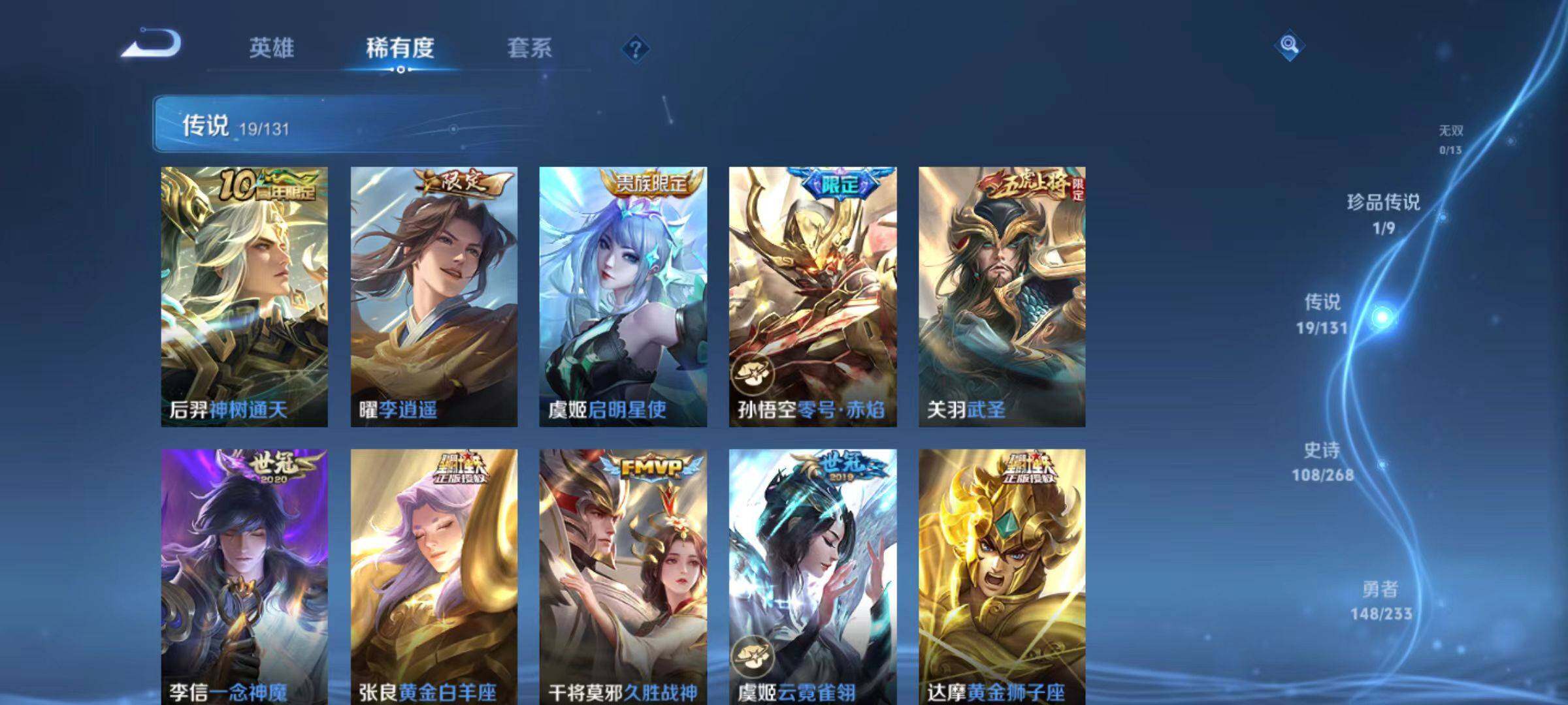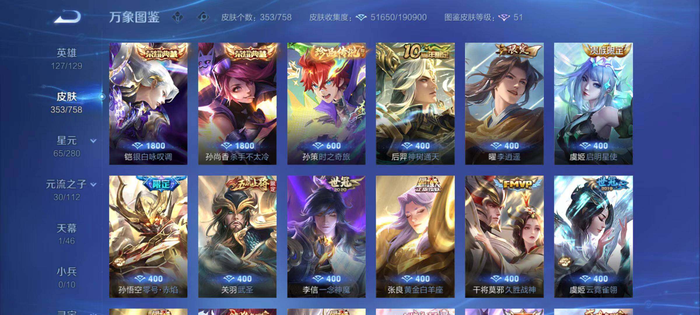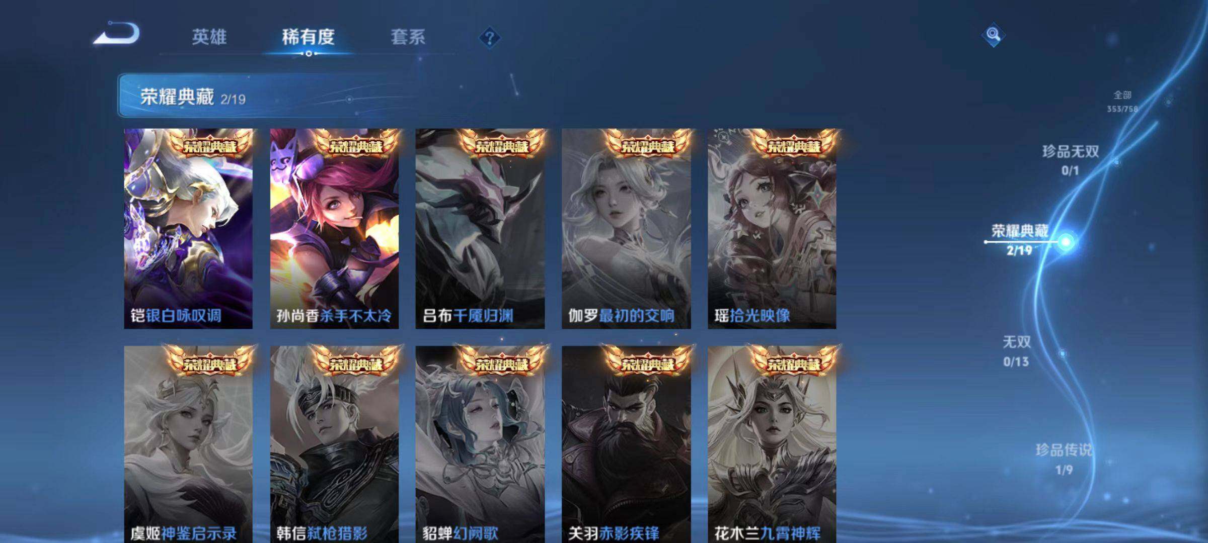 [15762580]安卓Q-V8--353皮肤-2典藏皮肤-1珍品传说-19传说-107史诗