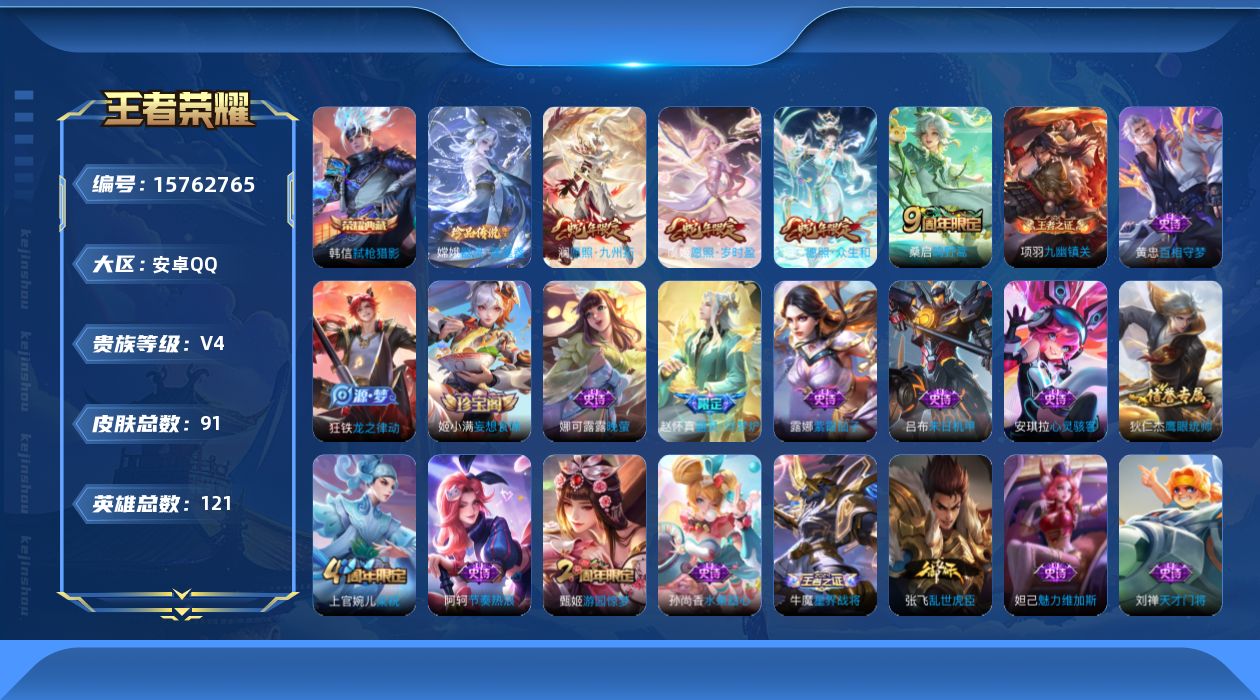 [15762765]安卓Q-91皮肤-1典藏皮肤-1珍品传说-4传说-20史诗