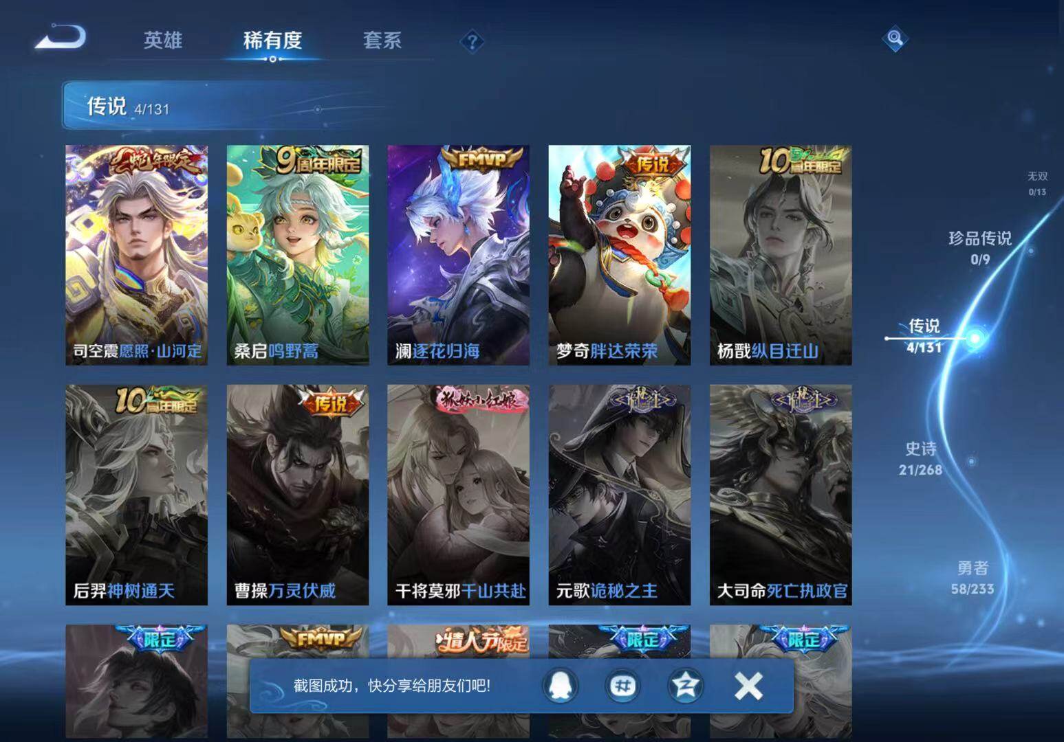 【传说皮肤】:司空震愿照山河定,桑启鸣野蒿,澜逐花归海,梦奇胖达荣荣