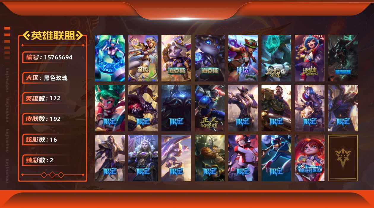 [15765694]【店主推荐捡漏号】铂金段位-172英雄-192皮肤-16炫彩-1终极-6神话-18限定-15传说-42史诗