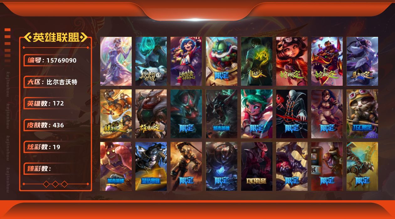 [15769090]【特价出售/店主推荐】青铜段位-172英雄-436皮肤-19炫彩-1终极-2神话-64限定-26传说-123史诗