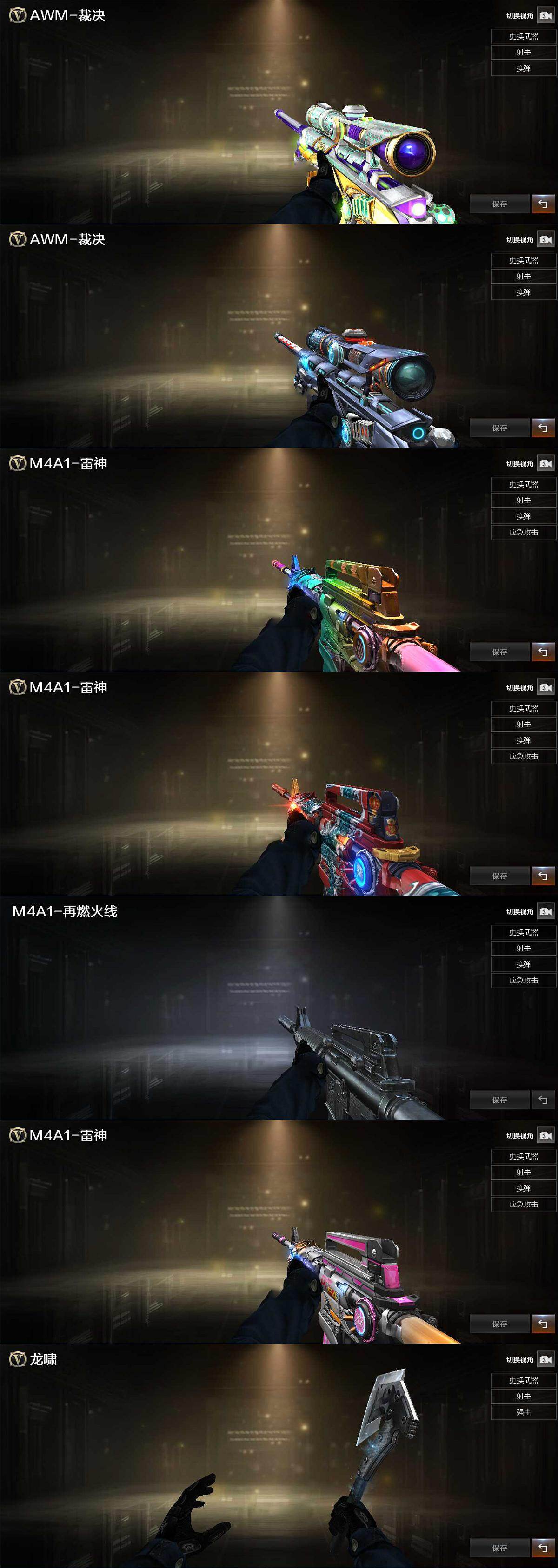 【皮肤】:裁决-巅峰荣耀 皮肤,裁决-羽掣 皮肤,雷神-传奇N9,M4A1-雷神-新春神龙皮肤,M4A1-再燃火线,雷神-神秘按键 皮肤,屠龙-春桃 皮肤,屠龙-破浪逐光 皮肤,轻型军用手斧-再燃火线