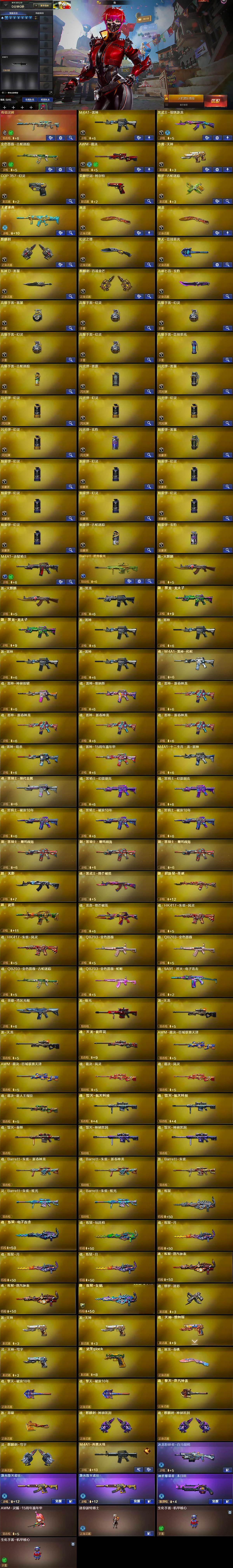 【英雄级武器】:M4A1-雷神,黑武士-锦绣游龙,金色蔷薇-古蛇迷踪,QBZ03-独角-IV,AWM-裁决,沙鹰-天神,COP 357-幻灵,荣耀世冠-柯尔特,修罗-古蛇迷踪,屠龙*2,麒麟刺,幻灵之锋,擎天-竞技荣光,斩神刀-雷暴,麒麟刺-百战金芒,丛林匕首-玄豹,高爆手雷-雷暴,高爆手雷-幻灵*4,高爆手雷-竞技荣光,高爆手雷-古蛇迷踪,闪光弹-雷霆,闪光弹-雷暴,闪光弹-幻灵*4,闪光弹-玄豹,烟雾弹-雷暴,烟雾弹-幻灵*7,烟雾弹-古蛇迷踪,烟雾弹-玄豹,M4A1-赤狱骑士,Barrett-碧霄极光