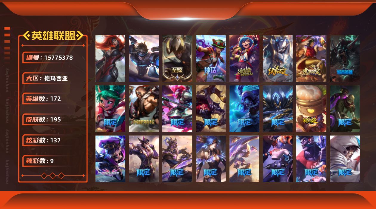 [15775378]【特价出售/店主推荐】未定级段位-172英雄-195皮肤-137炫彩-2终极-4神话-35限定-23传说-31史诗