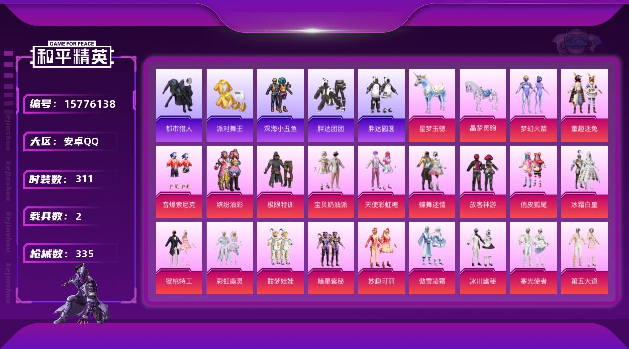 [15776138]安卓 手Q-29粉装-14特效枪-2载具-16粉色飞行器-127026热力值-20王牌印记-311套装-335枪皮
