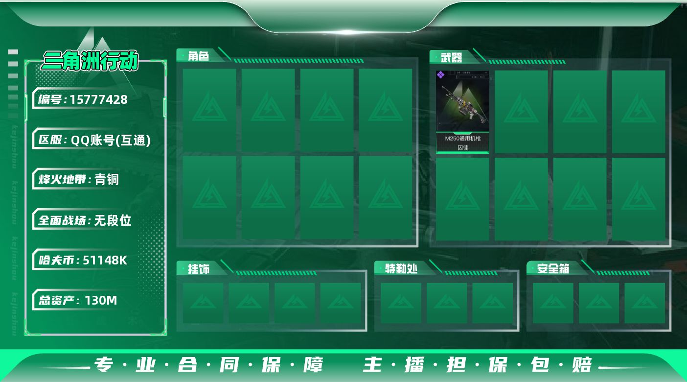 [15777428]【特价出售/店主推荐】130m总资产-51148k哈伏币-55烽火等级-青铜-1战场等级-无军衔