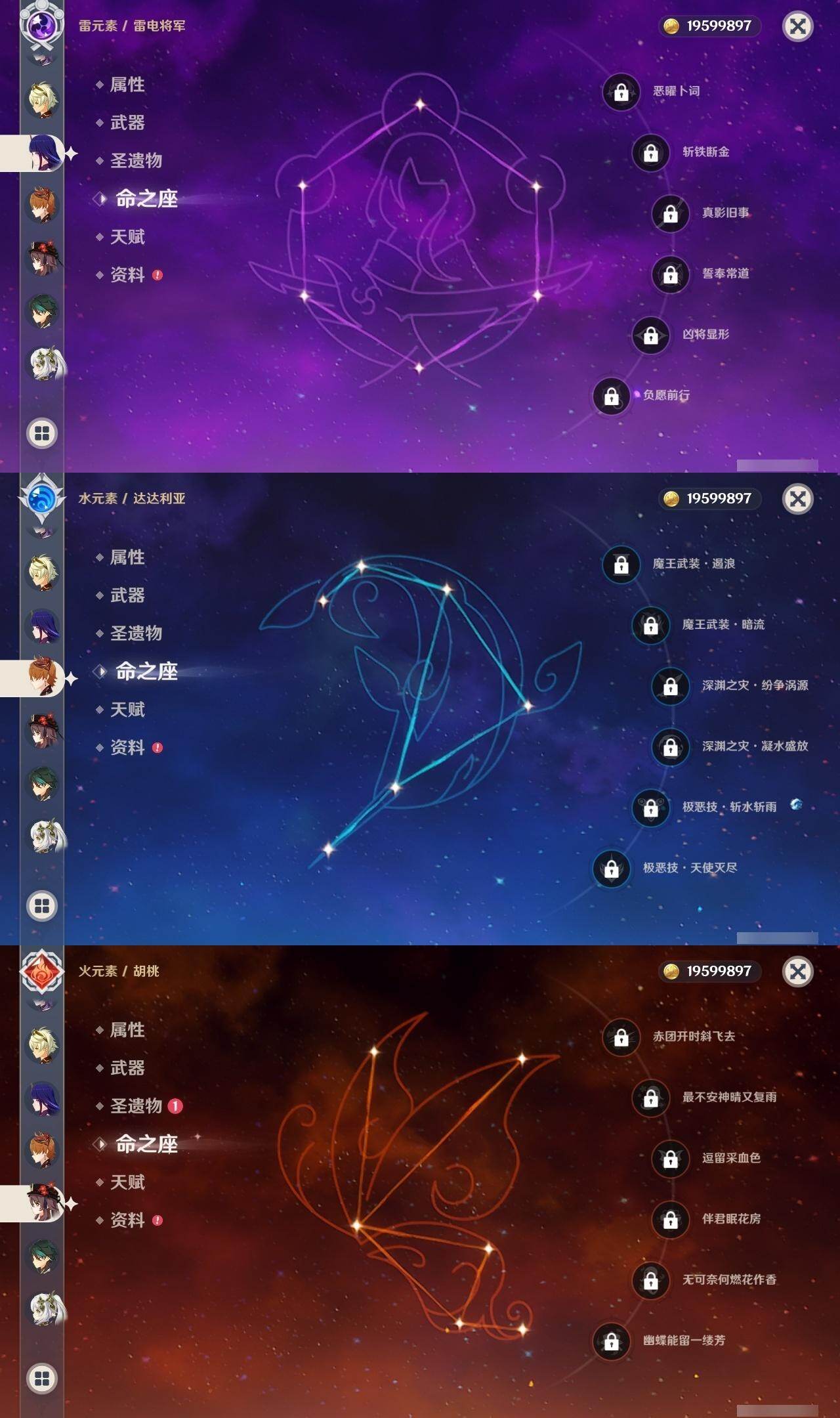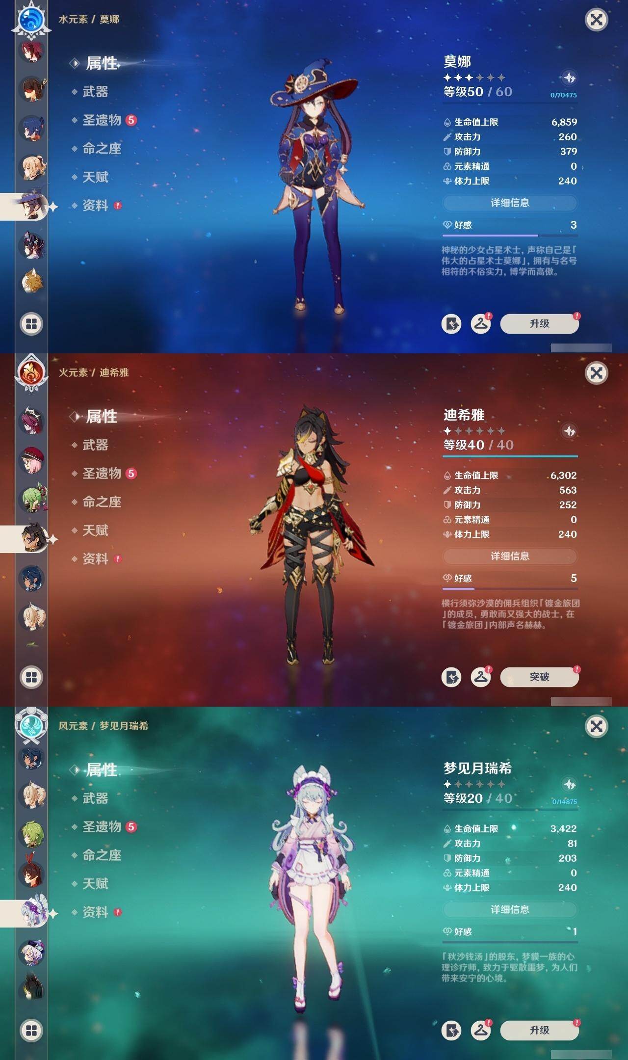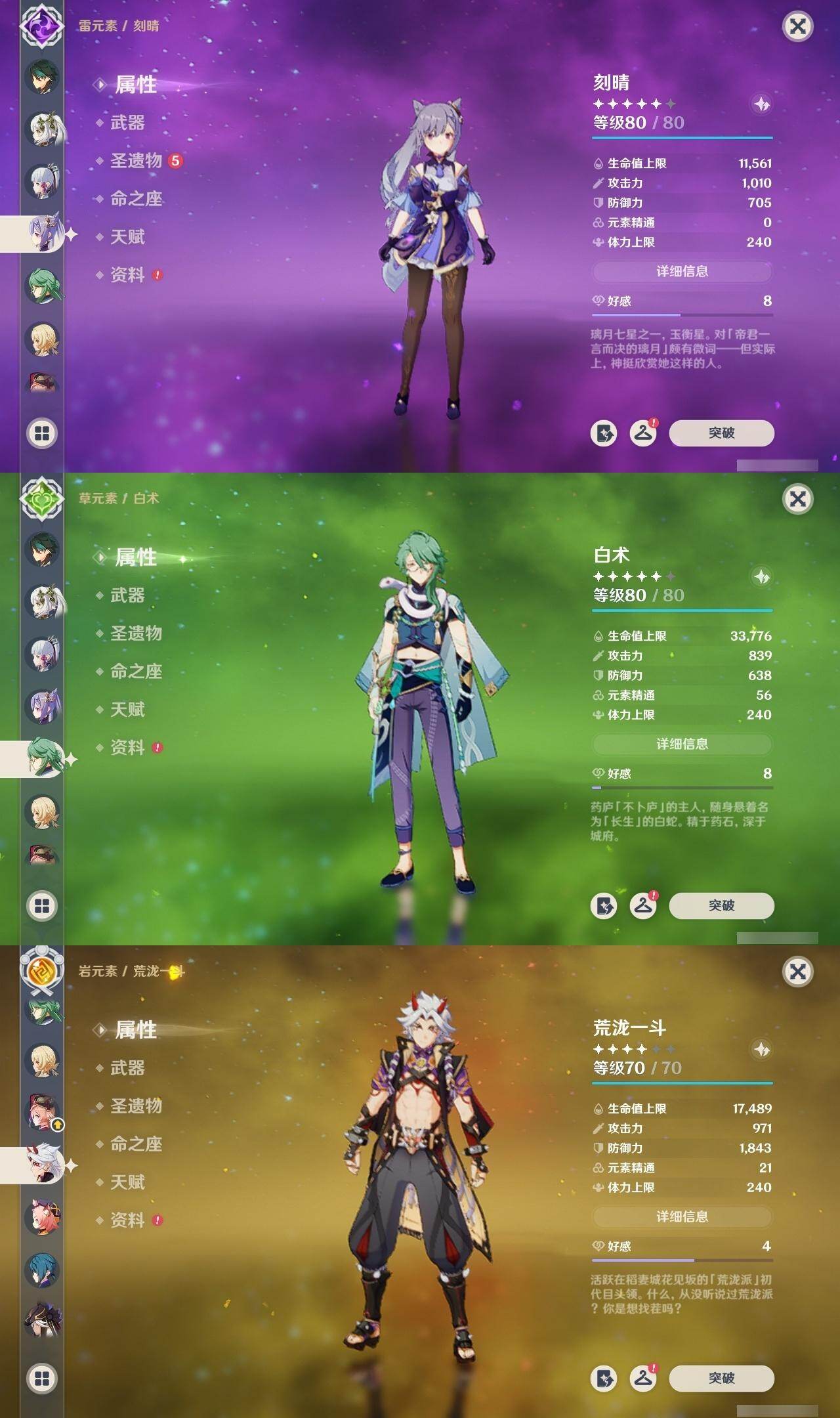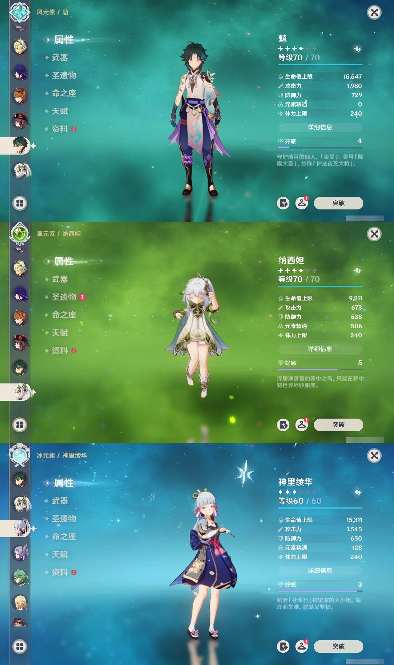 0命芙宁娜,0命那维莱特,0命白术,1命迪希雅,0命流浪者,0命纳西妲,0命赛诺,0命提纳里,1命夜兰,0命荒泷一斗,0命雷电将军,0命枫原万叶,0命神里绫华,0命钟离,0命胡桃,0命魈,0命达达利亚,1命刻晴,2命七七,0命琴,1命莫娜,0命迪卢克,0命希诺宁,0命梦见月瑞希,0命杜林,0命哥伦比娅,精1碧落之珑,精1若水,精1息灾,精1和璞鸢,精1天空之脊,精1贯虹之槊,精1天空之翼,精2天空之卷