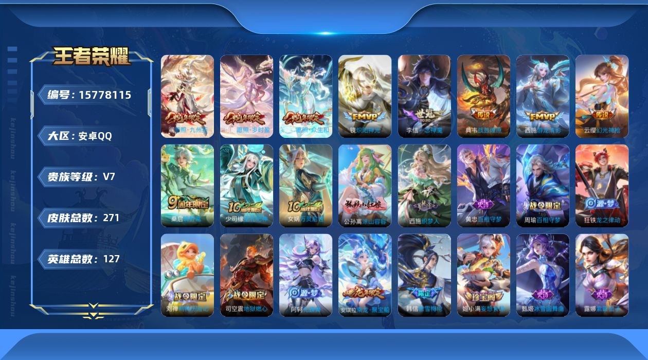 [15778115]积分夺宝255安卓Q-V7--271皮肤-10传说-78史诗