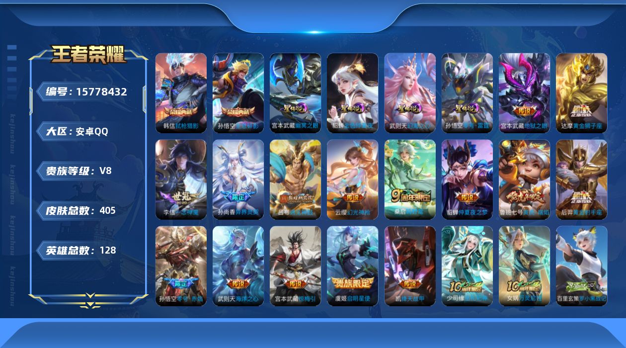 [15778432]按键6,安卓Q-V8-405皮肤-2典藏皮肤-1典藏英雄-16传说-123史诗