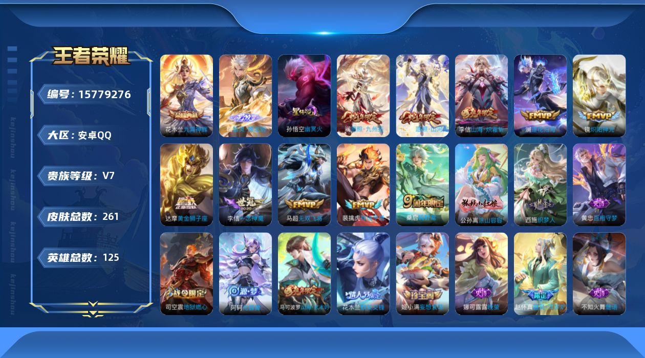 [15779276]万战境,蒙恬,安卓Q-261皮肤-1典藏皮肤-1无双-10传说-76史诗