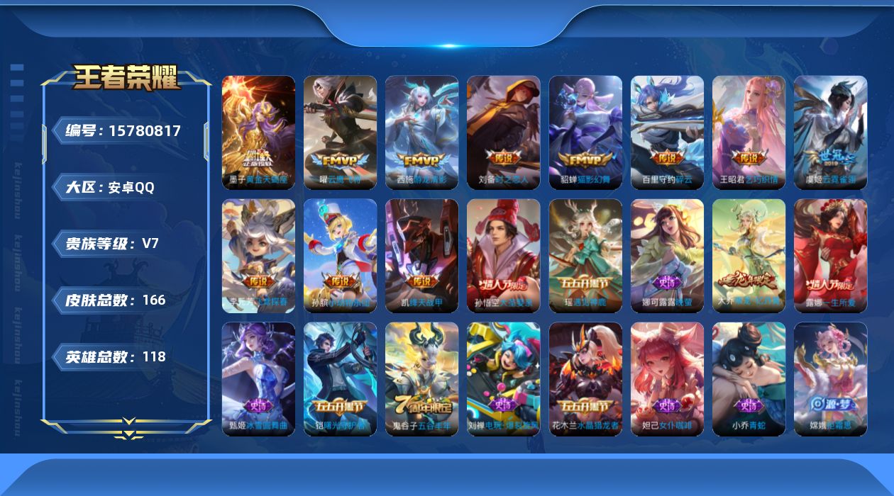 [15780817]安卓Q-118英雄-166皮肤-11传说-43史诗