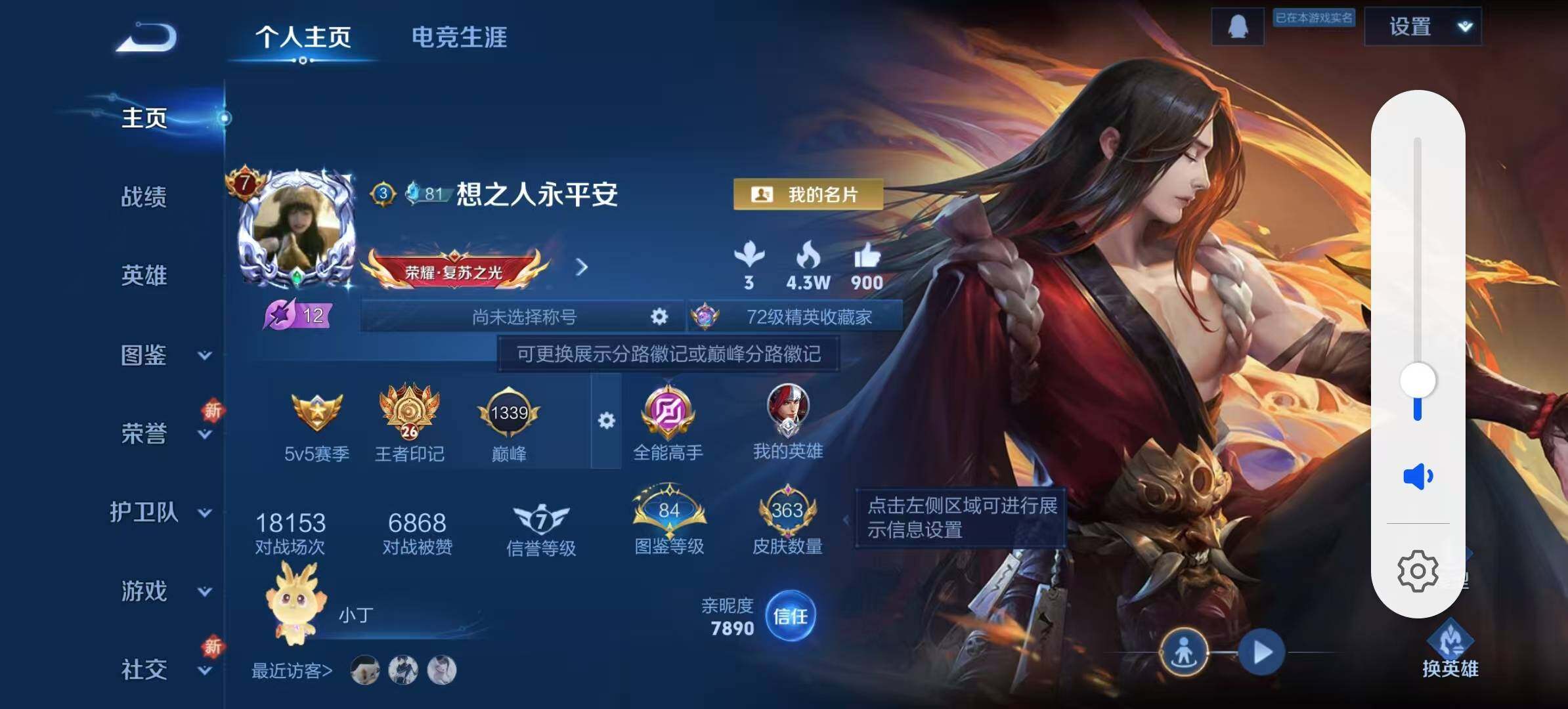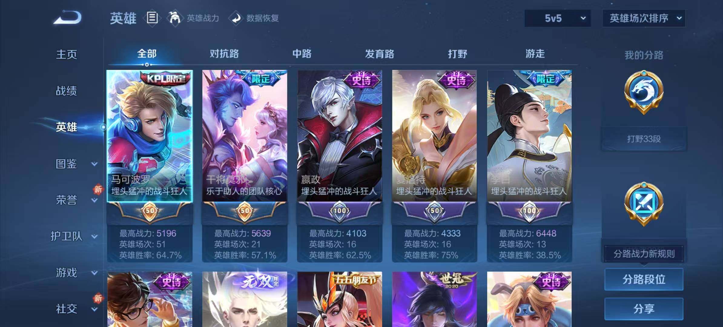 - PX_2095512-实名: 不可修改 性别: 男号 贵族等级: V7 英雄数: 123 皮肤数: 267 荣耀水晶: 最初的交响 无双皮: 器灵·螭龙剑 传说皮: 云鹰飞将,黄金白羊座,炽阳神光,末日机甲-孙尚香,琥珀纪元马超 限定皮: 遇见飞天,李小龙,天狼溯光者,神威,飞衡,梅西,默契交锋-花木兰,高山流水,匿光追影者,傲雪梅枪,寅虎·心曲,五谷丰年,鸣野蒿,陌上桑,映山客,愿照·岁时盈,愿