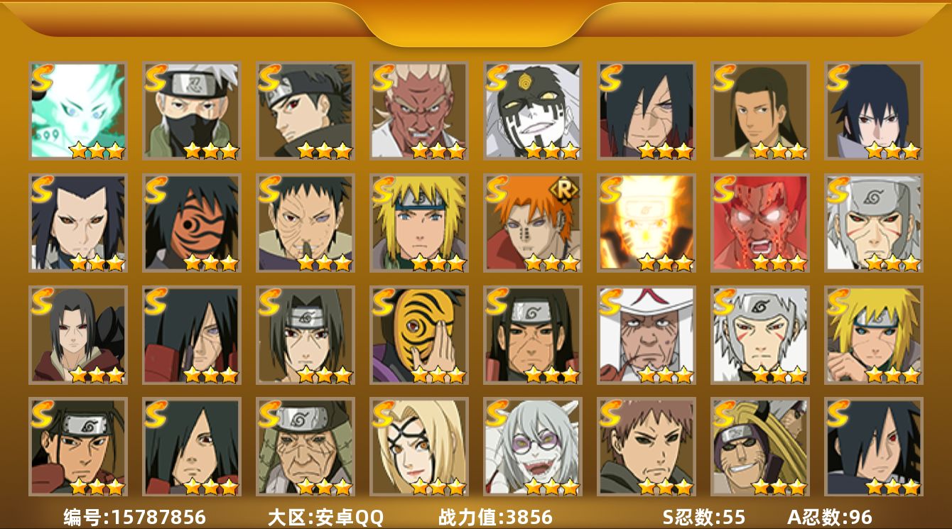 [15787856]55S级忍者数-96A级忍者数 3856w战力,55s,96a,本服榜3,战区32,攻击453万