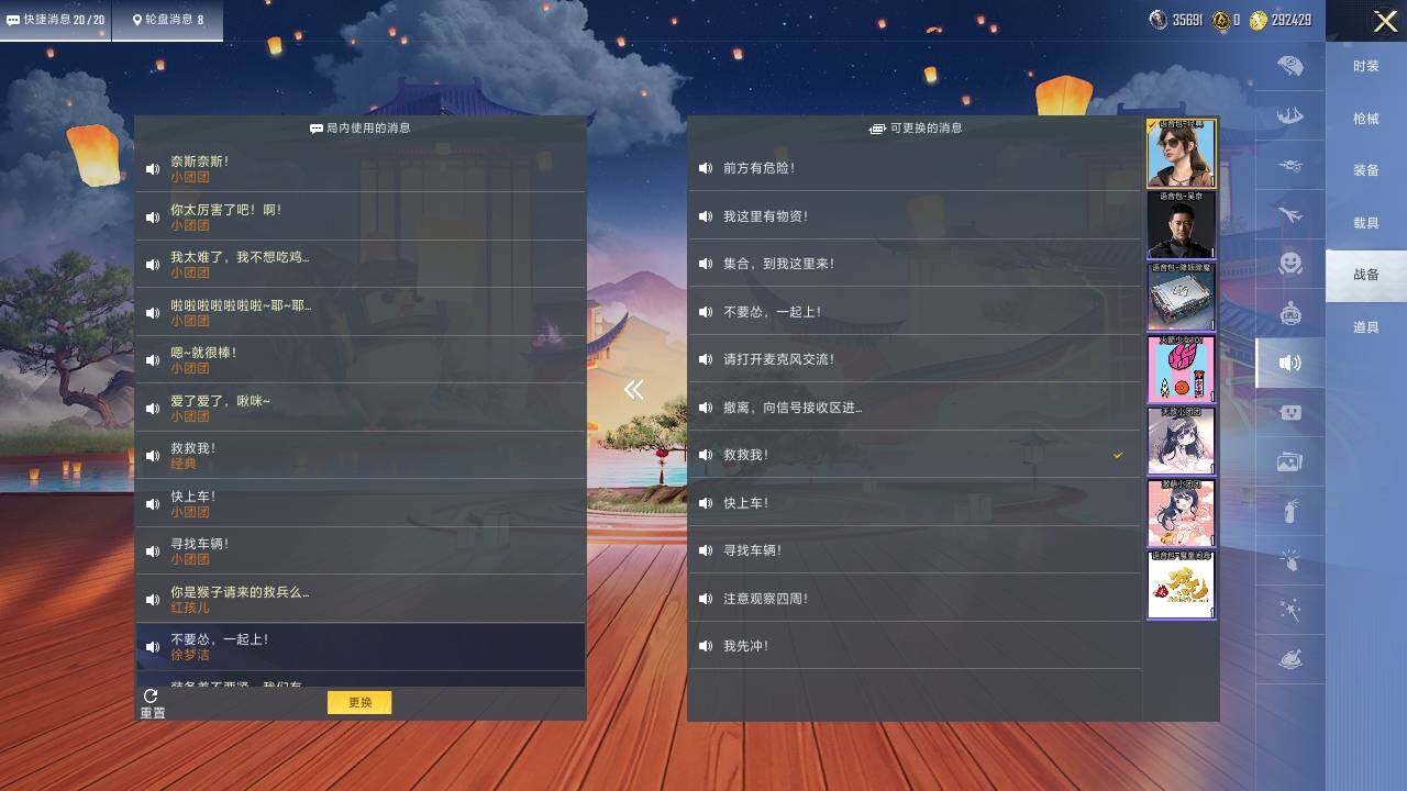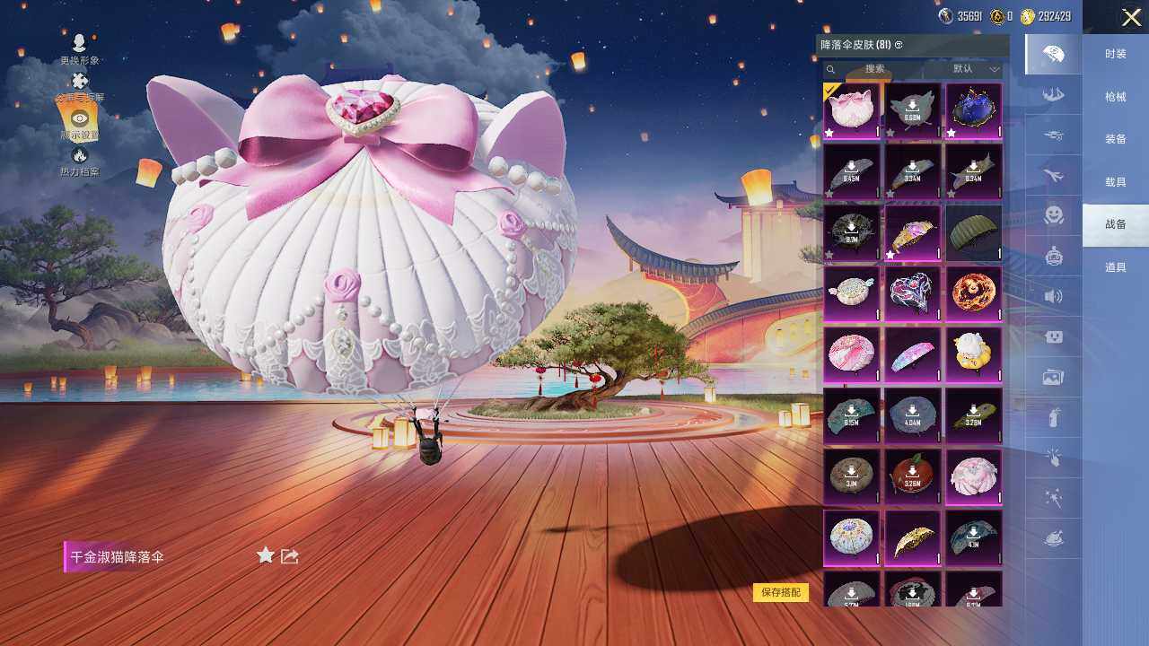 M416-墨龙九天,GROZA-镜光银凌,AUG-暖羊咩咩,M762-鬼刀,Kar98K-巳巳如意,M24-镜域双华,MK12-雪月幻音,M249-彩虹甜喵,DP-28-千金淑猫,破片手榴弹-热量炸弹