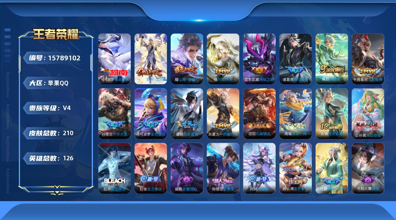 [15789102]4按键-夺宝快出-苹果Q-V4-126英雄-210皮肤-1珍品传说-12传说-65史诗