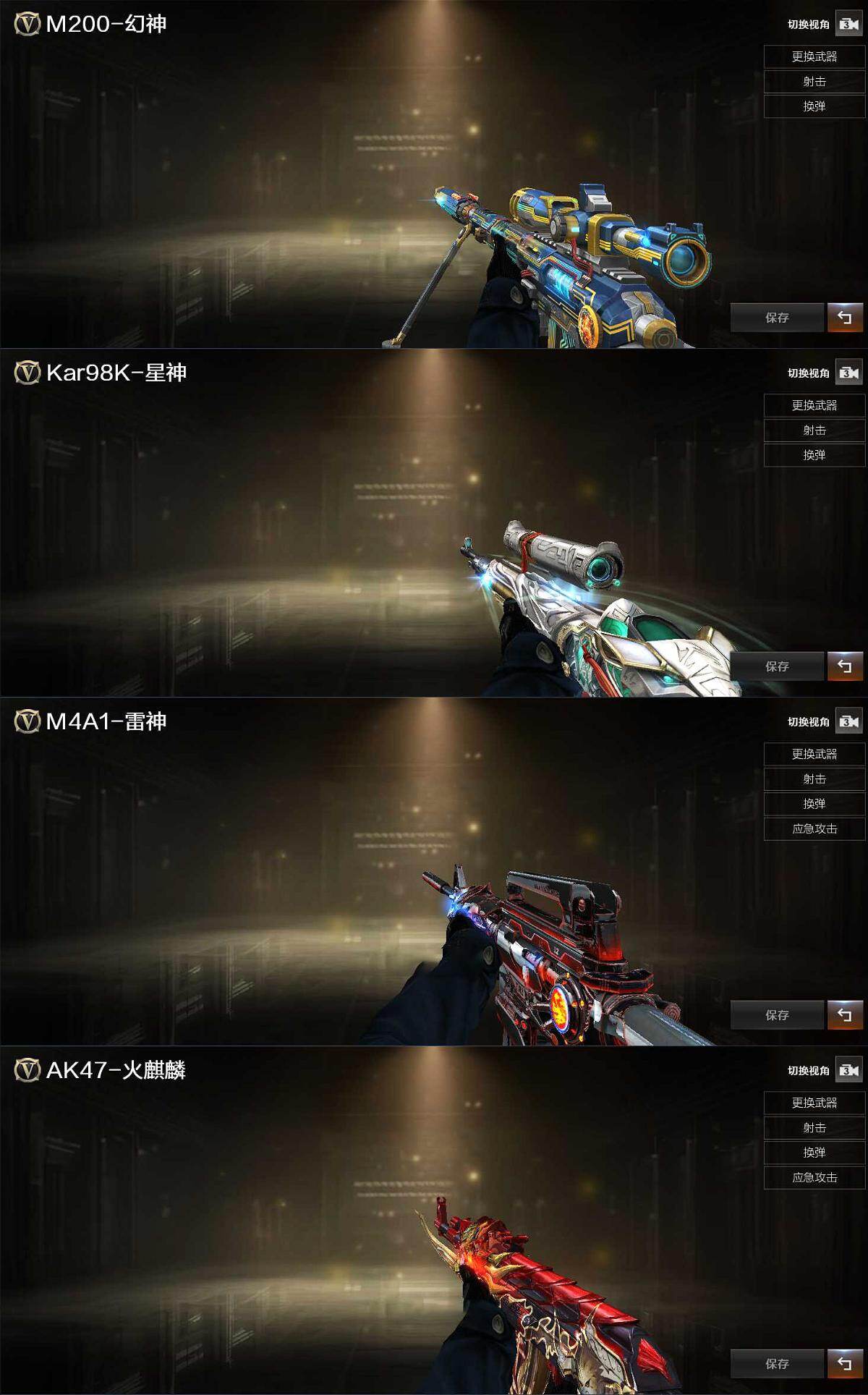 【热门武器】:G36C-幻影,Scar Light-白虎,M200-幻神,金色蔷薇-古蛇迷踪,修罗-古蛇迷踪,M200-竞技荣光,八面凌龙,牛牛-AK47,RPK-盘龙,幻神-魅影