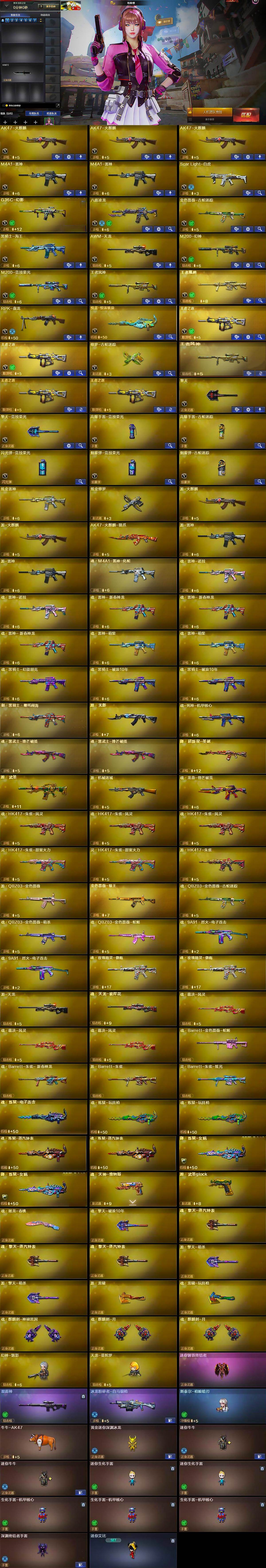 - [11605296]2粉装 4特效枪 10印记 可二次 可修改实名 优质装备:奇异狩猎者,AKM绿萝繁花,SCAR-L-锦绣绵绵,UMP45量子极限,萨利娅,Kar98K-巳巳如意 热门装扮:圣堂之誓,软萌银虎 五级特效枪:五级UMP45-量子极限,五级Kar98K-巳巳如意,五级SCAR-L-锦绣绵绵,五级AKM-绿萝繁花 紫色装扮:田园牧歌,轻风白浪,SS22特训,SS23特训,娇憨猪猪,梦幻奶油,萌趣咩咩,SS21特训,SS31特训套装,人气偶像,冰川特警,冷焰舞者,极速光影,SS30特训套装,SS33特训套装,青涩时光,顶瓜瓜,SS20特训,都市漫游者,都市魅力,长空猛禽,霓虹街区,缤纷果语,耀眼新星,荣耀,荧惑魅影,蓝彩潮人,蓝色运动,街头潮人,魅力单车,麻辣教官,黄色伏地魔,黄色名流,黄色运动,黑色伏地魔,龙的传人,冰河战士,龙魂突击队,蝶变,海岛探路者,涂山之恋,完美偶像,帅气教官,幻世战舞者,战地督导,探宝勇士,湖蓝色名流,绮丽涂鸦,白色伏地魔,破晓战魂,破蛋小黄鸡,空岛之星,竞技达人朋克,王牌教练,灼焰舞者,猛禽,SS29特训,米开朗基罗,星途旅人,白光莹,纯真浪花,热情海星,SS28特训,鱼渊荷华,燕燕于飞,巳巳如意,惊鸿侠骨,神气柴柴,懵萌河马,SS24特训(SS24特训套装),萤火魅影(套装-荧惑魅影),SS25特训,元气发射,锦衣飞扬,焰鹰斗篷,幻羽潜行,SS27特训,明鸳圣池,金羽特工,SS26特训,春光漫游,快闪甜心,大橘大利,智慧之神,SS32特训服(SS32特训套装),绯格组合,糖霜甜心,金耀舞者,蓝调潮人,光之冒险 优质战备:圣堂之誓降落伞,创世·救赎降落伞,精灵梦叶罗丽降落伞,星途旅人降落伞,江南烟雨降落伞,星之彼岸降落伞,幻彩电音降落伞,幻星舰长飞行器,彩虹甜喵降落伞,幻影战神降落伞
