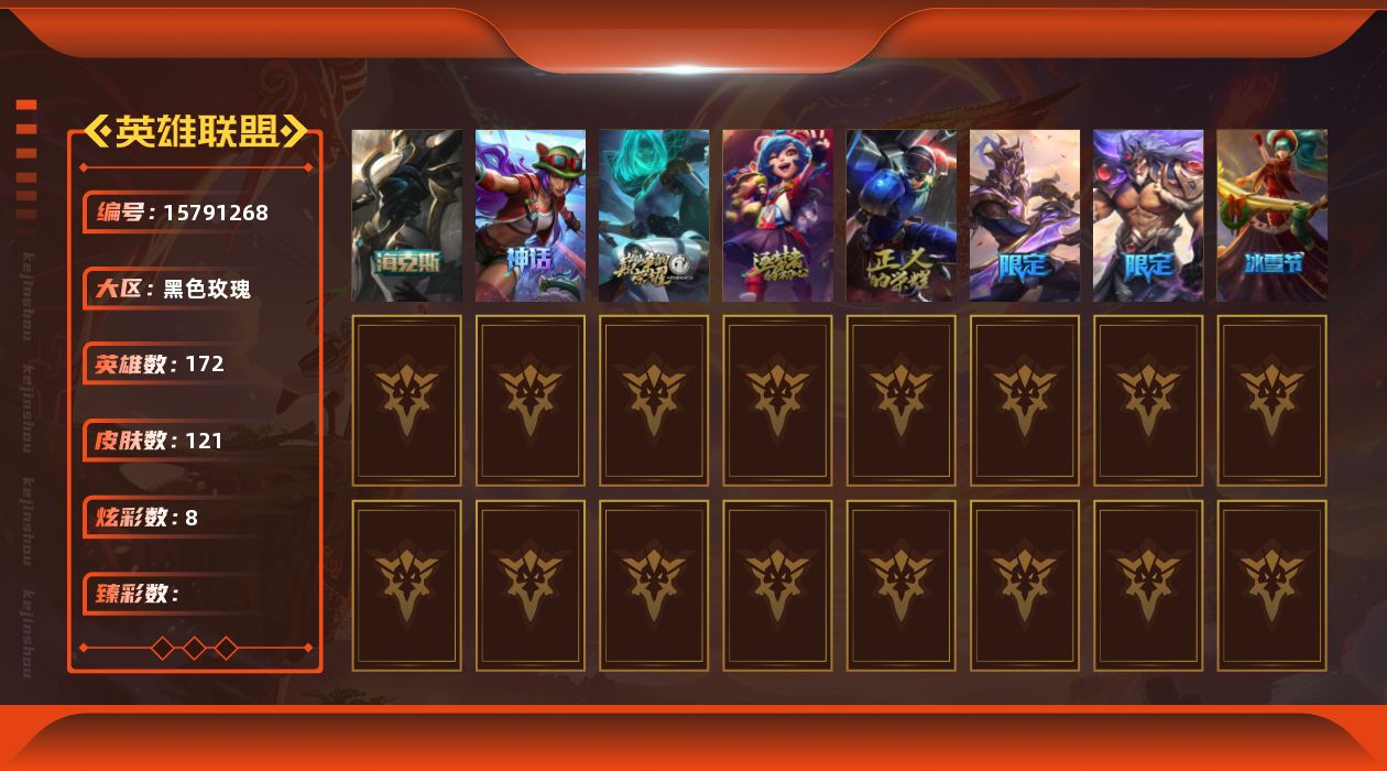 [15791268]可二次【特价出售/店主推荐】白银段位-172英雄-121皮肤-8炫彩-0终极-5神话-4限定-18传说-32史诗