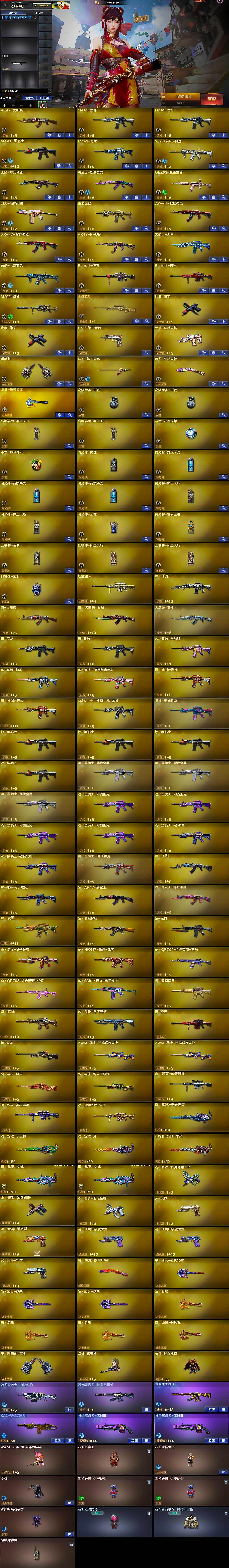【热门武器】:QBZ03-金色蔷薇,Scar Light-白虎,M4A1-青龙,M200-幻神,白虎-电玩蓝兔,炼狱-迷你小钢,M4A1-黑骑士,羊驼玩偶,沙鹰-修罗*2