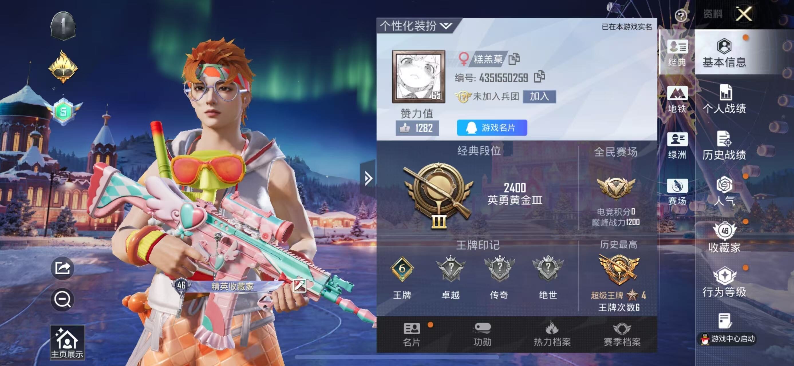 [15793458]【店主推荐捡漏号!可直接换绑】苹果 手Q-1粉装-1特效枪-0载具-1粉色飞行器-46162热力值-6王牌印记-113套装-170枪皮