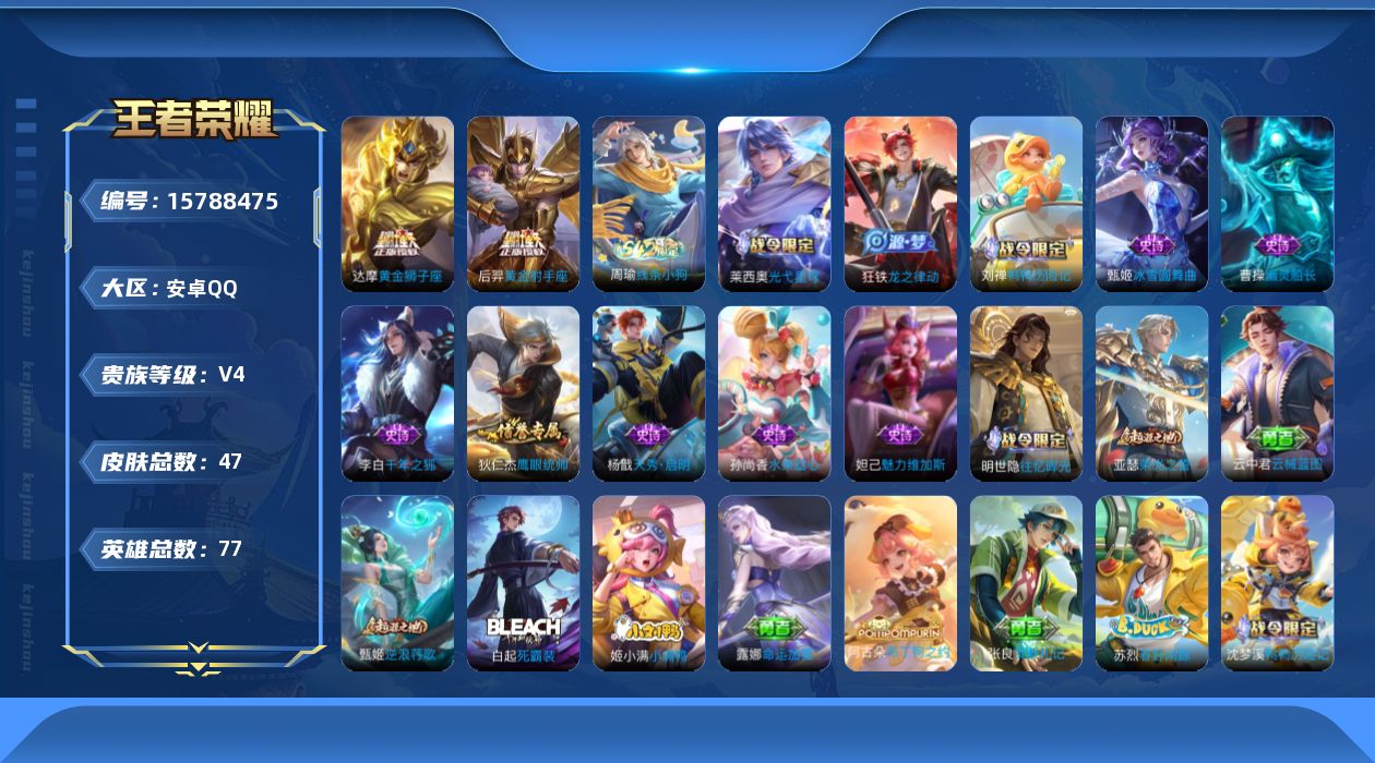 [15788475]安卓Q-V4-最强王者段位-77英雄-47皮肤-2传说-10史诗