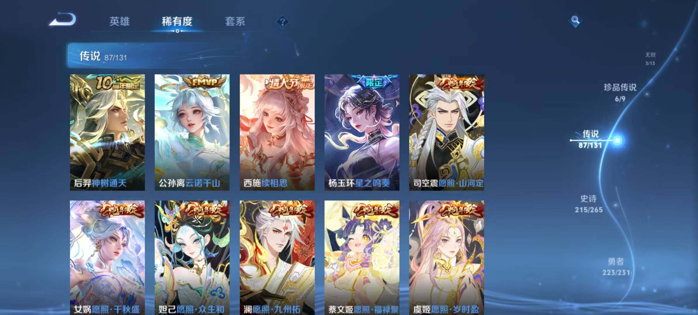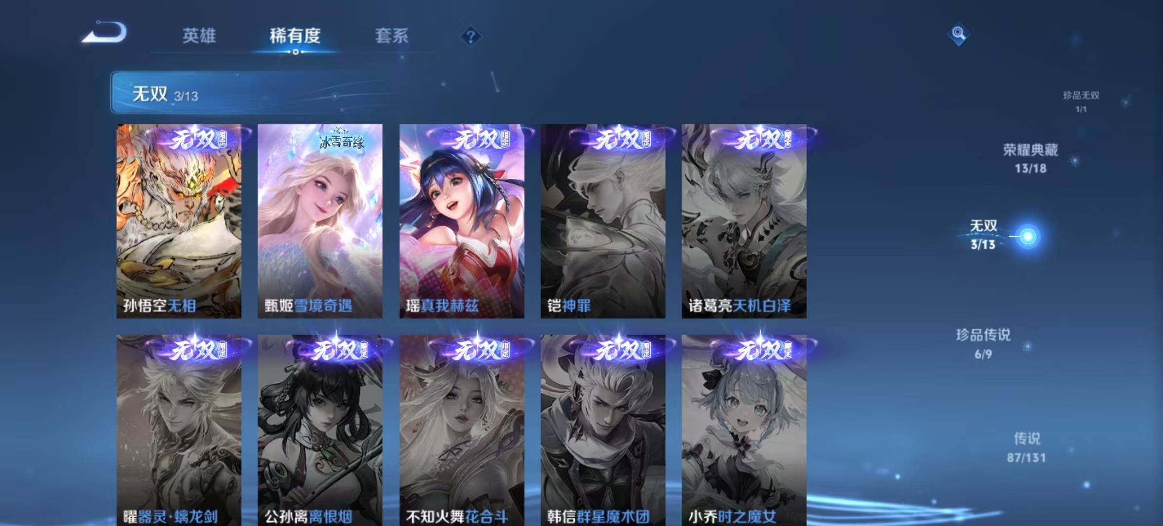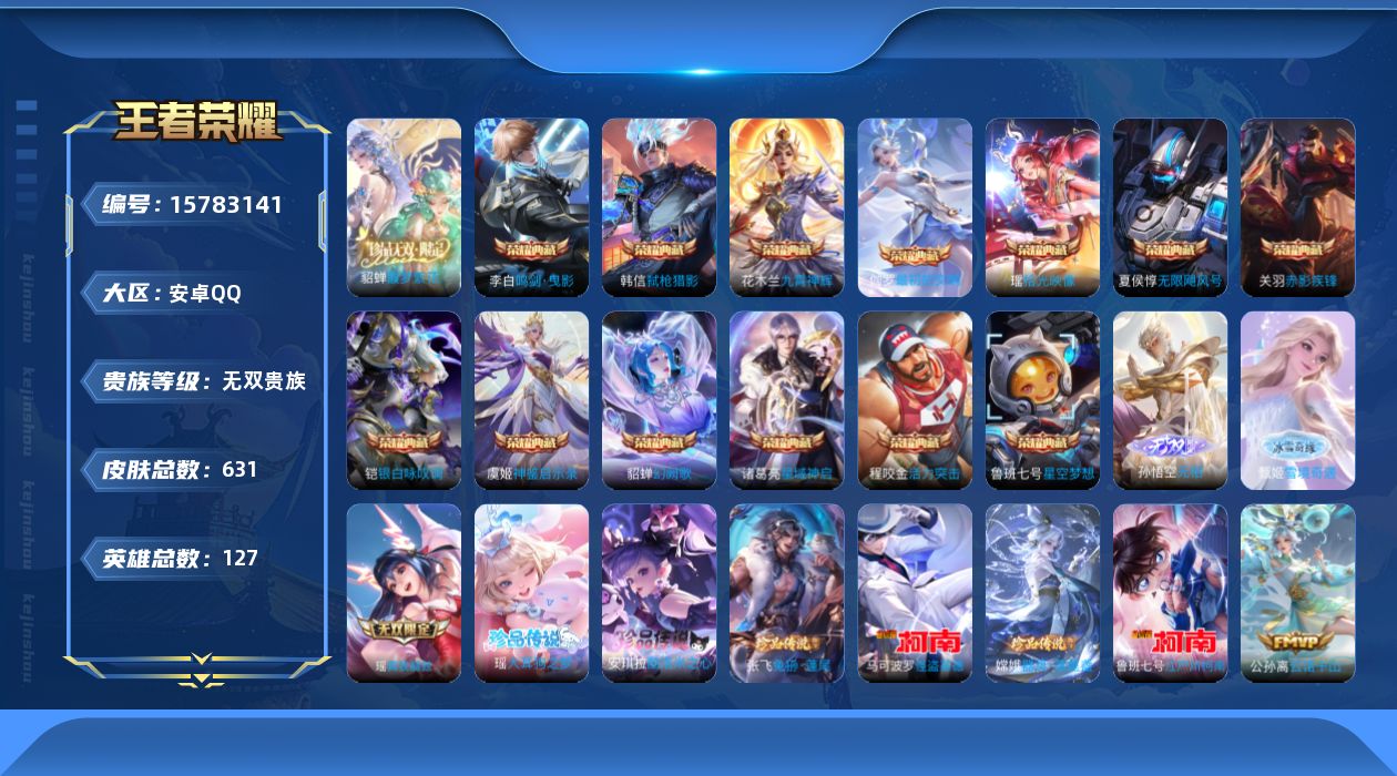 [15783141]安卓Q-V11-631皮肤-13典藏皮肤-1珍品无双-3无双-6珍品传说-87传说-215史诗