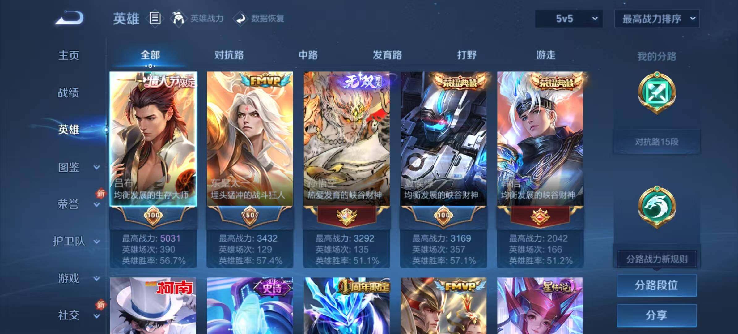 - [12233867]V8 1典藏 2珍品传说 14传说 125英雄 252皮肤 可修改实名 优质装备:弑枪猎影(韩信典藏),朽木白哉,黑崎一护,末日机甲-孙尚香(绿蚂蚱),地狱火,超时空战士-狄仁杰,山海·炽霜斩(李信年限),涂山容容 传说皮:云诺千山,幻光神枪 珍宝阁皮:胡桃夹子,女武神 限定皮:愿照·九州拓(澜年限),鸣野蒿,至尊宝,凤求凰(白切鸡),梅西,武陵仙君(小桃花),飞衡(韩信年限),诗剑行,怒海麟威,冰锋战神,逐梦之影,永曜之星,辉光之辰,大圣娶亲,美猴王 史诗皮:鸭鸭历险记-刘禅,星界战将,龙之律动,石田雨龙,茶境仙,怒海争锋,战舞者,蔬乡物语(鲁班七号),百相守梦-黄忠,紫霞仙子,白龙吟,黄金分割率,千年之狐,江河有灵,末日机甲-莱西奥,魅语,百解令(蒙犽),蒙恬荣光圣徽,偶像歌手,晚萤,电玩·爆裂旋风,龙骑士(小龙虾),末日机甲-吕布,猫狗日记-孙策,乱世虎臣,节奏热浪,女仆咖啡,摇滚巨星,水果甜心,绅士熊喵,天才门将,星夜王子,功夫厨神,德古拉伯爵,暗隐猎兽者,幽灵船长,鬼剑武藏,心灵战警,缤纷独角兽,乘风破浪,逐浪之夏,月团寄思,水晶猎龙者,曙光守护者,箭羽风息,金属风暴,原初追逐者,圣诞狂欢,圣诞恋歌,鹰眼统帅,暗夜贵公子,魅力维加斯,未来纪元-赵云