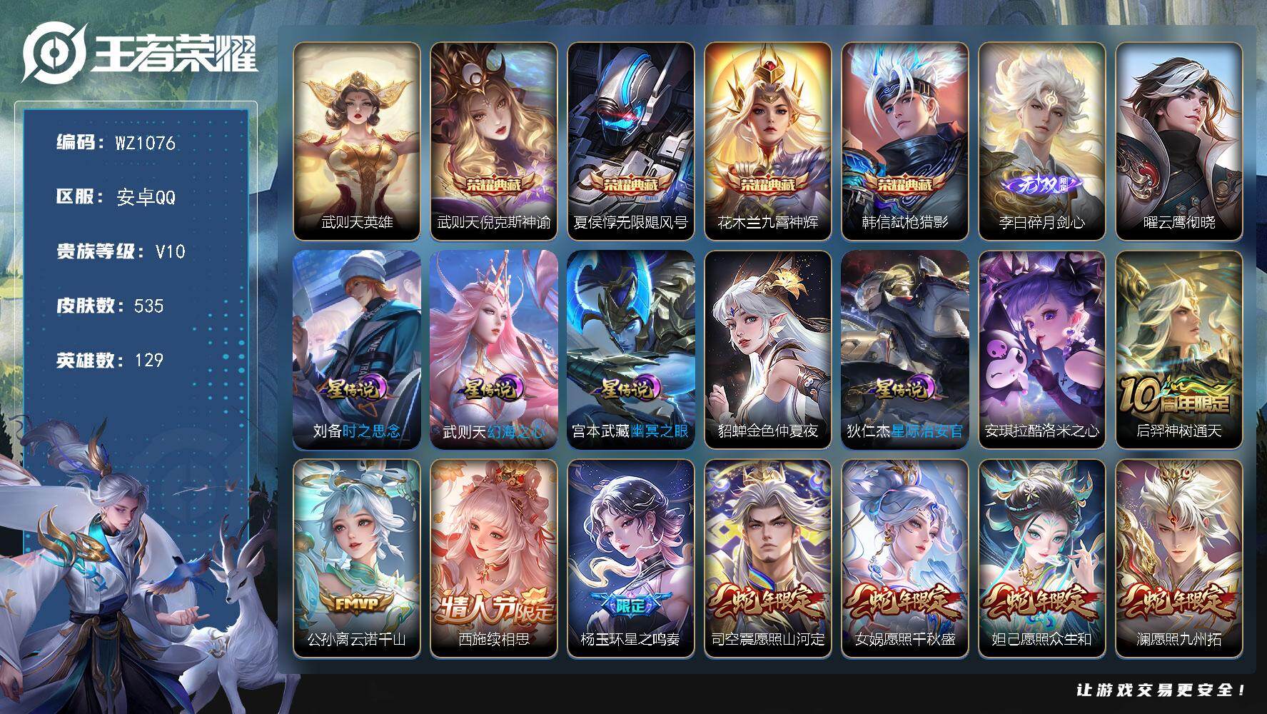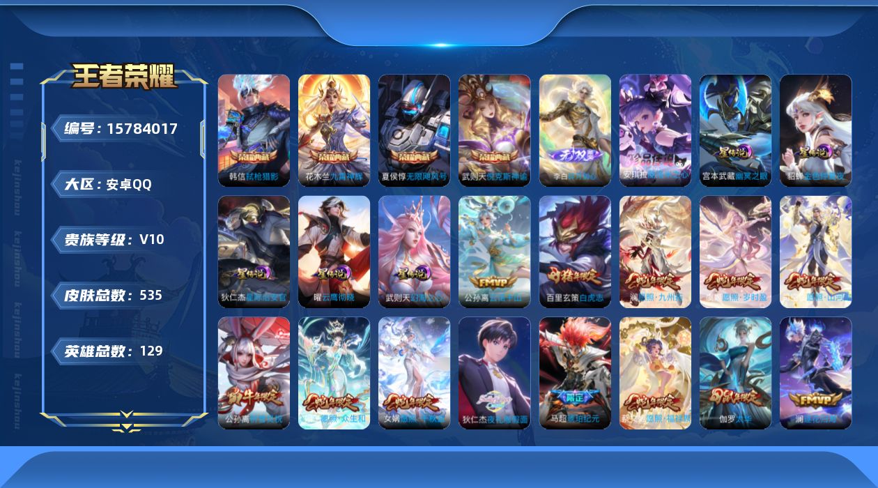 [15784017]安卓Q-V10-535皮肤-4典藏皮肤-1典藏英雄-1无双-1珍品传说-57传说-171史诗
