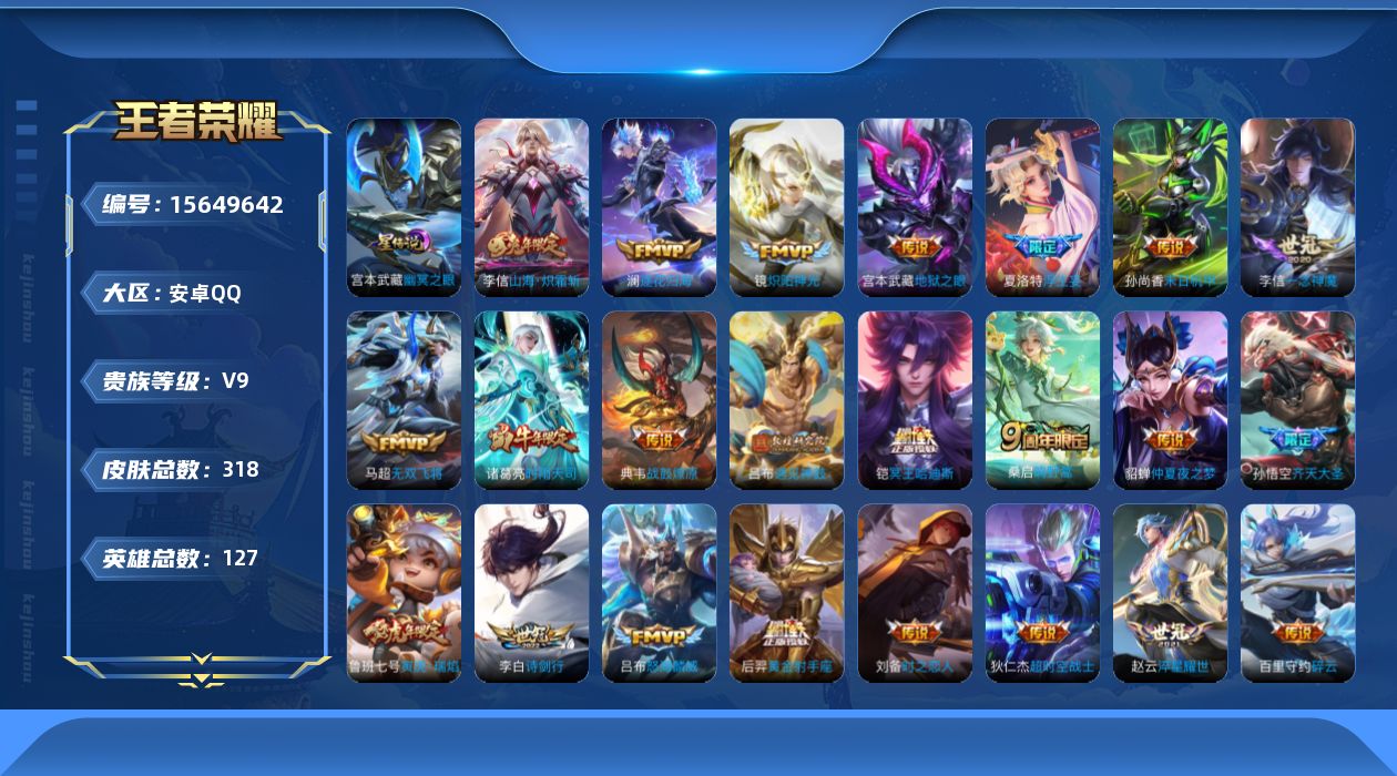 [15649642]安卓Q-V9-至尊星耀IV段位-127英雄-318皮肤-31传说-79史诗