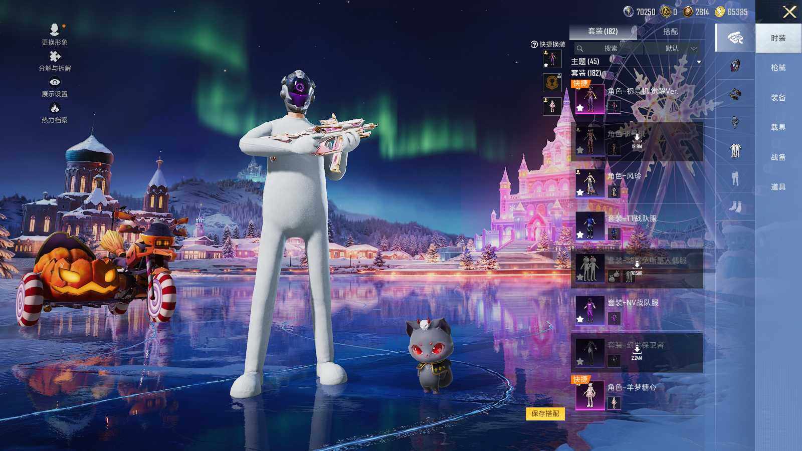 【粉色套装】:粉装-幻影战神,粉装-梦幻火箭,粉装-闪耀律动,角色-初号机 觉醒Ver.,粉装-幻影飞狐,角色-冷漠罗丽,角色-罗征,角色-羊梦糖心