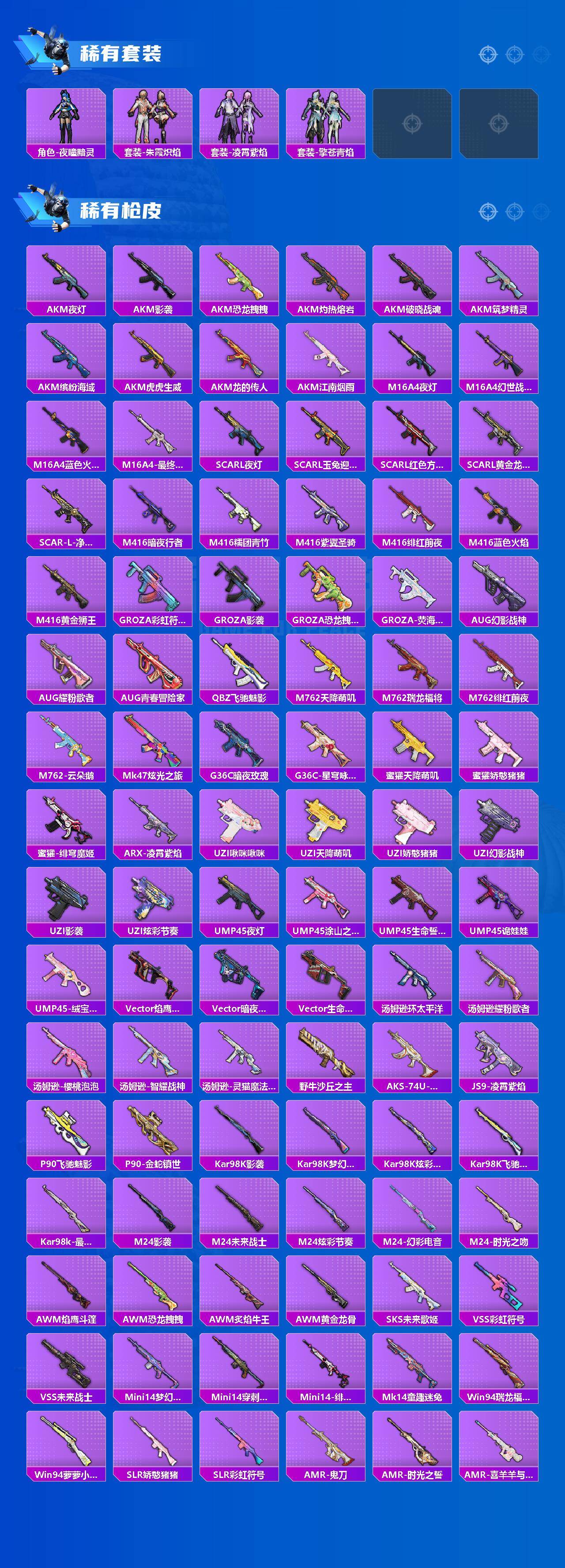 【稀有枪皮】:AKM-夜灯,AKM-影袭,AKM-恐龙拽拽,AKM-江南烟雨,AKM-灼热熔岩,AK