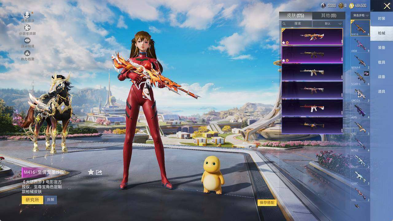 AKM-炫紫旋律,M416-五爪金龙,M416-至情至圣,Kar98K-巳巳如意,MG3-洛神天依