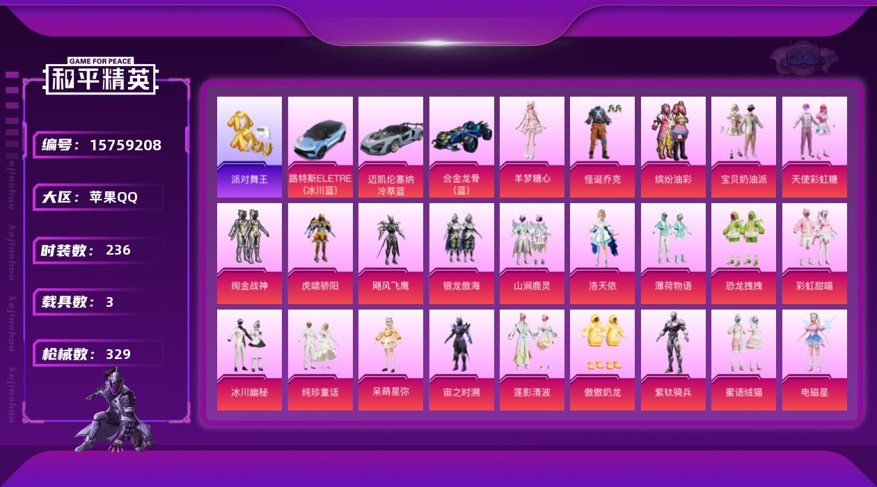[15759208]可二次【特价出售/店主推荐】苹果 手Q-30粉装-11特效枪-3载具-9粉色飞行器-120202热力值-20王牌印记-236套装-329枪皮