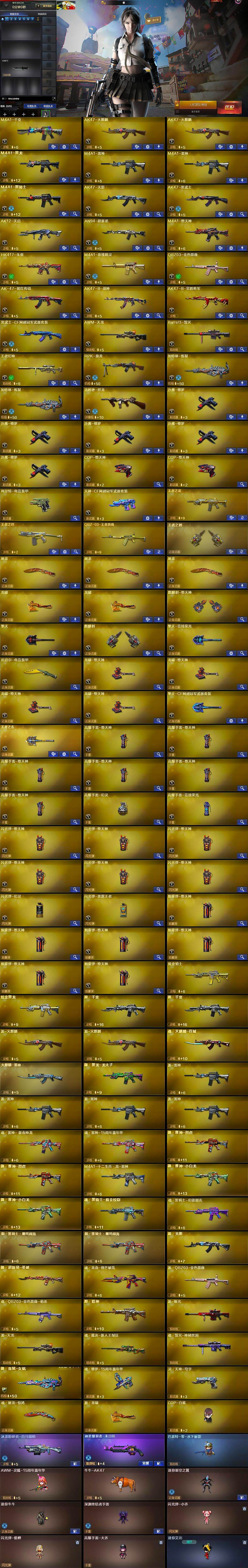 - [16480474]山西一区-57V-2王者-1炫金 【热门武器】:死亡之眼*2,C.A.T,汤姆逊-烈龙*6,RPK-盘龙,沙鹰-修罗*3,高爆手雷-幻兽*3 【王者炫金武器】:王者之光,炫金武士 【皮肤】:雷神-暗月,雷神-能量核心,火麒麟-心动糖果,毁灭-暗月,毁灭-英雄计划 皮肤,M4A1-千变-孔明皮肤,黑龙-能量核心,黑骑士-暗月,无影-能量核心,天启-暗月*2,战神-紫绶金章皮肤,战神-流金岁月皮肤,天龙-能量核心,修罗-能量核心*3,天神-暗月*2 【角色】:零,樱,暗夜-X,初恋灵狐,风暴女,嘉年华灵狐,娟娟,灵狐者-X,铁骑荣耀 【人偶武器】:AWM-灵狐-15周年嘉年华,C.A.T,迷你深渊冰龙,迷你裂空之翼*2,迷你波特博士*7,夺魂,迷你火种*5,深渊终结者手雷,闪光弹-小乔 【暴走生化】:死亡之眼*2 【挑战大师】:神圣爆裂者III*2,AK47-冰龙粉碎者,冰龙粉碎者-白马银枪,激光毁灭者III-白马银枪,VEPR-12-金魔,激光毁灭者III,机甲撕裂者III,神圣爆裂者-末日III 【英雄级武器】:AK47-火麒麟*2,M4A1-黑龙,M4A1-雷神,AK47-无影,AK47-黑武士*2,AK12-天启,AN94-超新星*2,M4A1-武圣,AK47-机械迷城,无影-神兵利器,M4A1-玫瑰精灵,QBZ95-幻兽,AK-47-猩红传说,AK47-B-战神,黑骑士-海王,AWM-天龙,Barrett-毁灭,王者之怒-觉醒版,RPK-盘龙,汤姆逊-烈龙*6,沙鹰-修罗*3,沙鹰-天神,沙鹰-幻兽*3,Glock18-武圣,屠龙,擎天,麒麟刺*2,女皇利刃-幻兽,高爆手雷-雷霆,高爆手雷-幻兽*3,闪光弹-雷霆,闪光弹-幻兽*3,烟雾弹-雷霆,烟雾弹-幻兽*3 【道具】:战舰背包,炫彩背包,老虎背包,背包-洛丽塔,超级背包,黄金生化钩,绿色巨人,灵魂忍者,变异宝贝,迷雾幽灵,夺命之镰*2,防化服*2,防弹头盔*8,防弹衣*8,C4工具钳*7,手雷包*6 【特殊枪械】:6烈龙,1盘龙