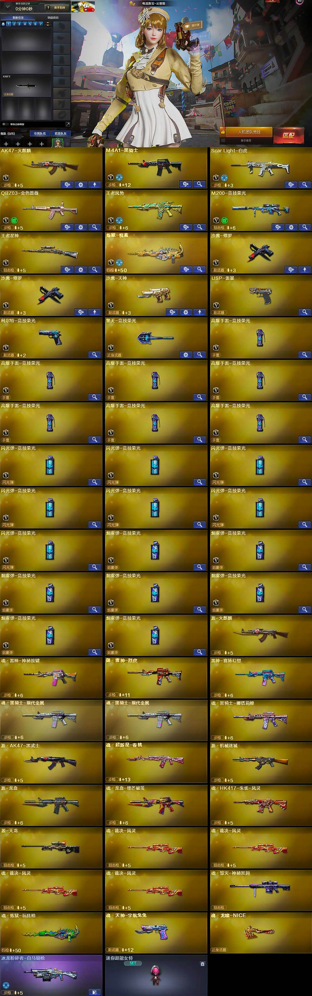 【英雄级武器】:AK47-火麒麟,M4A1-黑骑士,Scar Light-白虎,QBZ03-金色蔷薇,王者风势-觉醒版,M200-竞技荣光,王者星神-觉醒版,炼狱-悦蓝-觉醒版,沙鹰-修罗*2,沙鹰-天神,USP-雷暴,柯尔特-竞技荣光,擎天-竞技荣光,高爆手雷-竞技荣光*7,闪光弹-竞技荣光*7,烟雾弹-竞技荣光*7