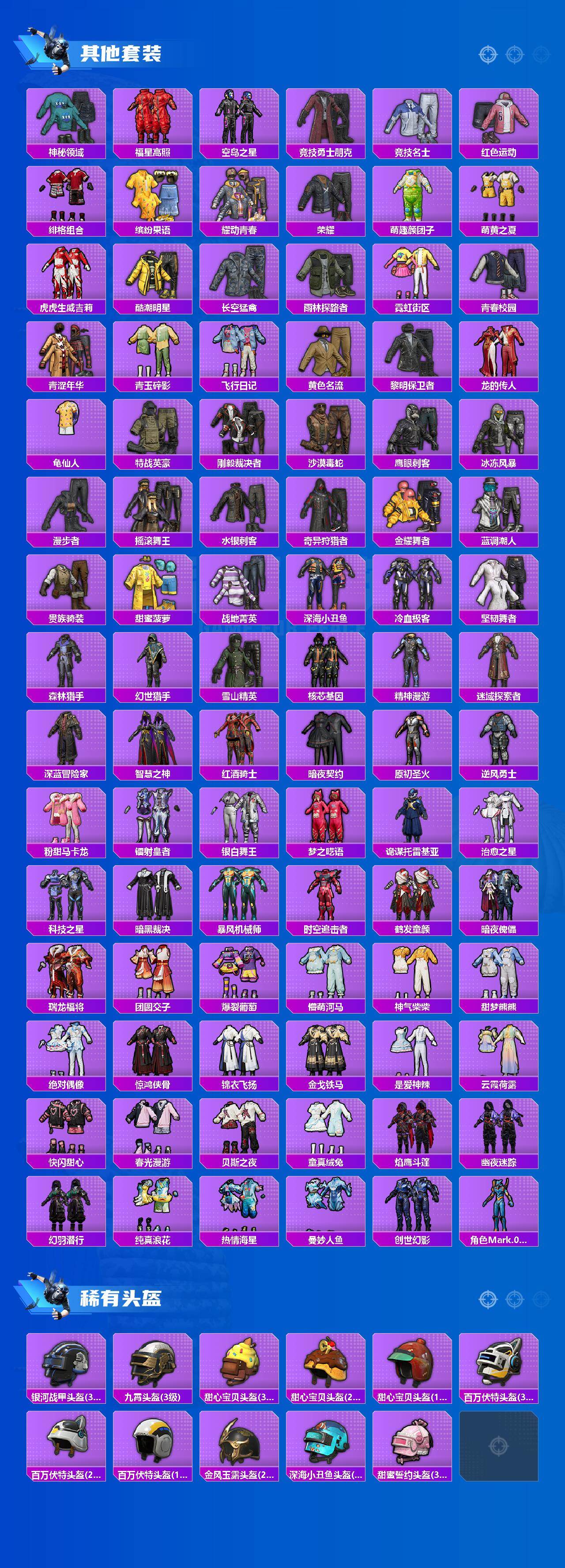 套装-都市猎人,套装-冥河战士,套装-派对舞王,套装-深海小丑鱼,套装-奇异狩猎者,套装-未来战士,套装-宝贝奶油派,套装-天使彩虹糖,套装-烈焰拳霸,套装-莲影清波,角色-烟云彩露,套装-鹰眼刺客