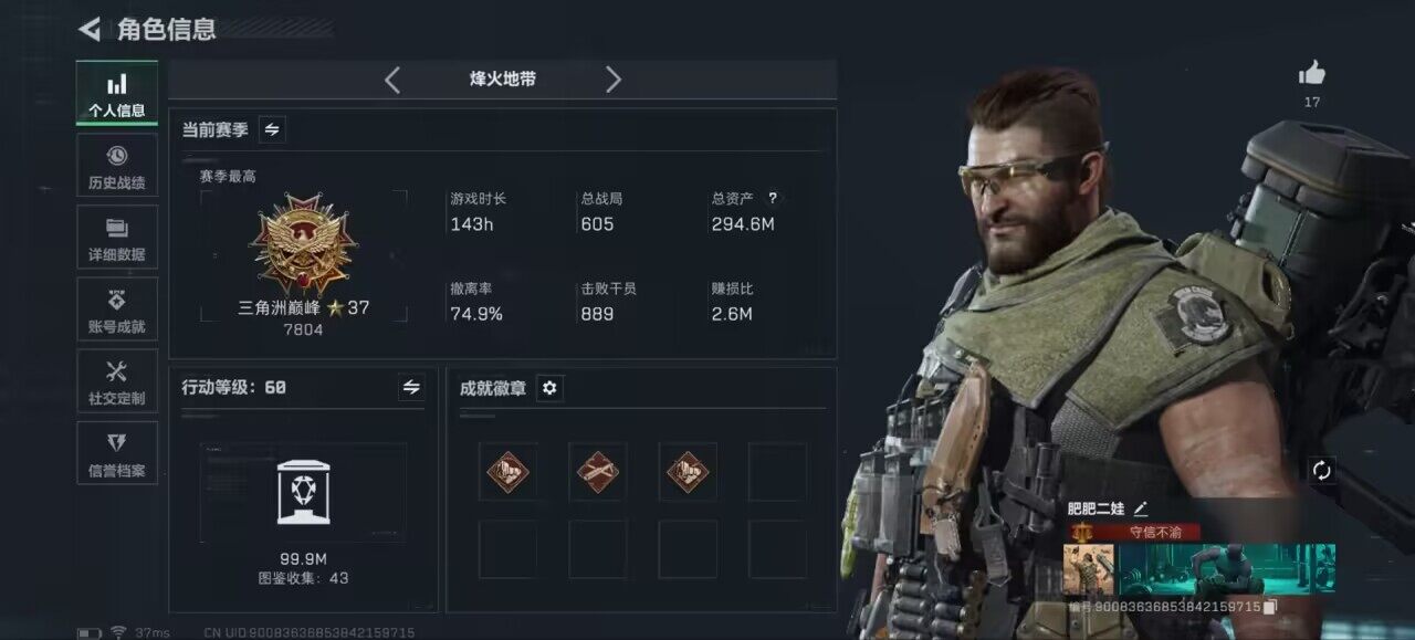 [15970133]可二次【特价出售/店主推荐】294m总资产-74840k哈伏币-60烽火等级-三角洲巅峰-34战场等级-军士长
