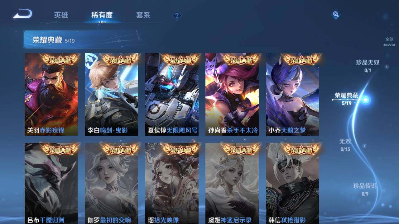 【荣耀典藏】:武则天英雄,夏侯惇无限飓风号,小乔天鹅之梦,孙尚香杀手不太冷,李白鸣剑曳影,关羽赤影疾锋