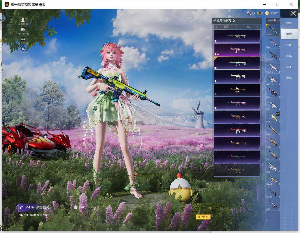 AKM-炫紫旋律,SCAR-L-锦绣绵绵,M416-心之恋语,GROZA-巴啦啦小魔仙,AUG-星之彼岸,AUG-暖羊咩咩,Vector-红伞翩翩,Kar98K-巳巳如意
